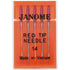Red Tip needles are designed for denser embroidery. Created in the same style as the classic Blue Tip, the Janome Red Tip needles provide the extra strength and durability needed for denser embroidery and thicker fabrics. The size 14 needles are equipped with a larger eye, which helps to prevent thread breakage which can occur when working with tricky threads, such as metallic.