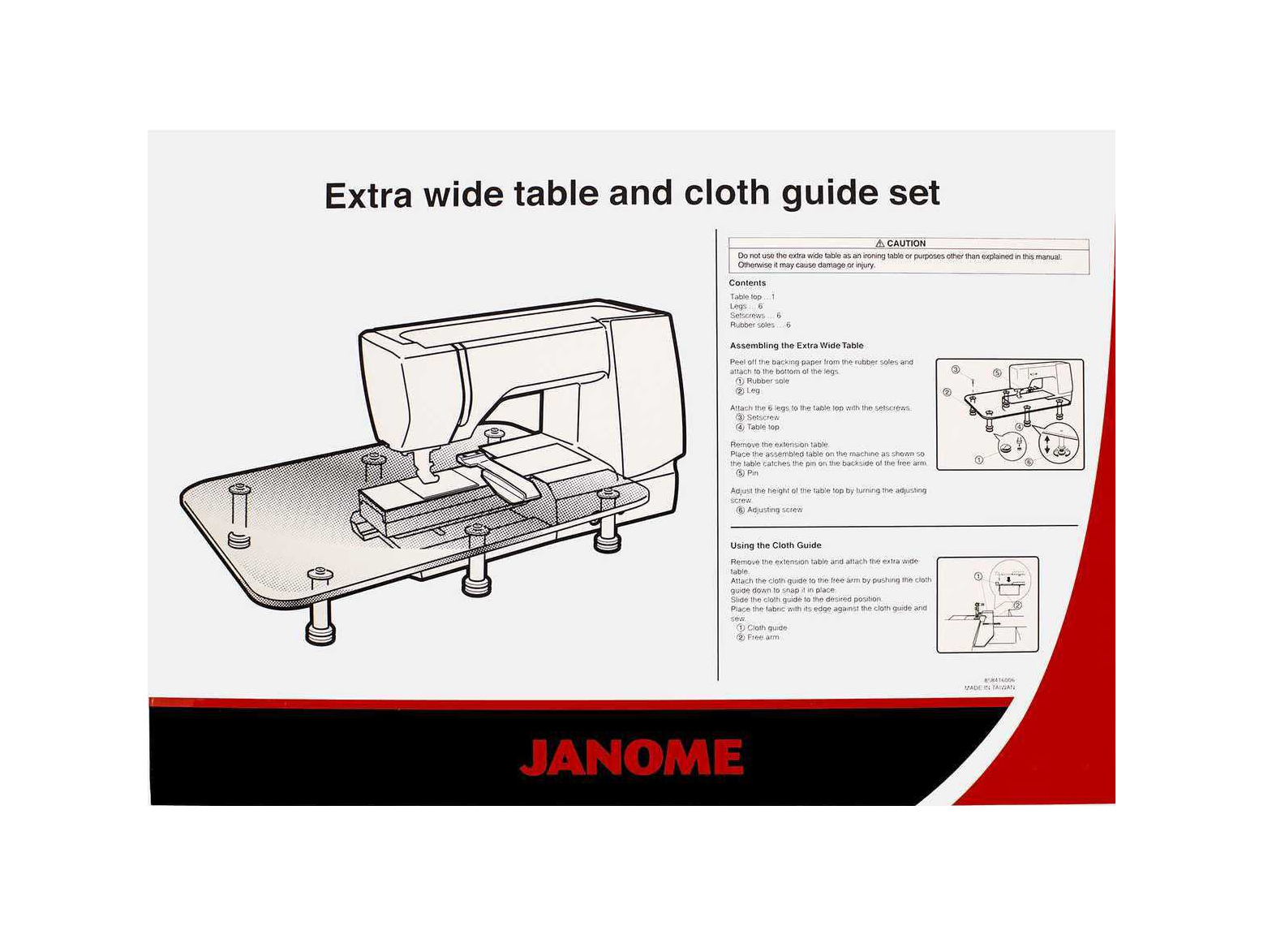 The Janome Extra Wide Table and Cloth Guide Set is 24.5" x 16.5". This extra wide, resin extension table is perfect for those extra large sewing and quilting projects.