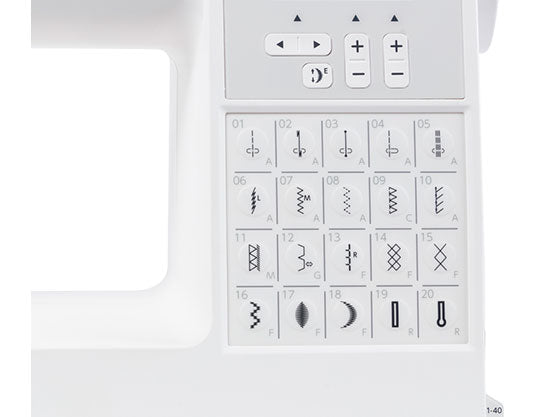 Choose from 40 built-in stitches to complete any sewing project, from quilts to accessories. Twenty direct stitch selection buttons feature the most commonly used stitches, making them easy to select. All 40 stitches and their corresponding reference numbers are conveniently located on a pullout chart.