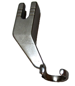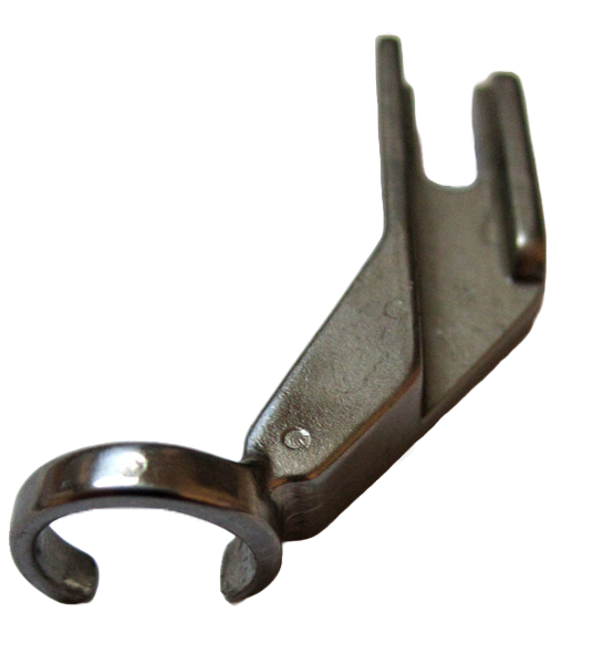 This presser foot for free-motion sewing is open at the front so that the needle area is easy to see. It is useful for quilting small designs or when the needle area needs to be visible.