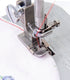 This is the presser foot provided with a spring-type guide. It is best suited to single-lap stitching. The stitch width is 1.5 mm. The spring-type guide is intended for light to standard weight materials. The guide is thin and short. It can have the ability to turn in a small portion and sew small curves with ease. This is the presser foot provided with a spring-type guide. It is best suited to single-lap stitching. The stitch width is 1.5 mm. The spring-type guide is intended for light to standard weight materials. The guide is thin and short. It can have the ability to turn in a small portion and sew small curves with ease.