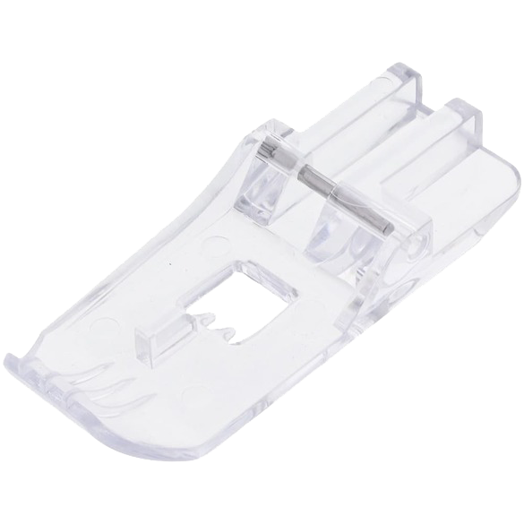 Since this type of presser foot has a transparent foot, it is helpful to allow the operator to see stitches and material while sewing. In the case of the looped part such as the t-shirt hem, this foot will assist you to see the needle point so clearly to overlap the stitches at the end of sewing with the beginning one.