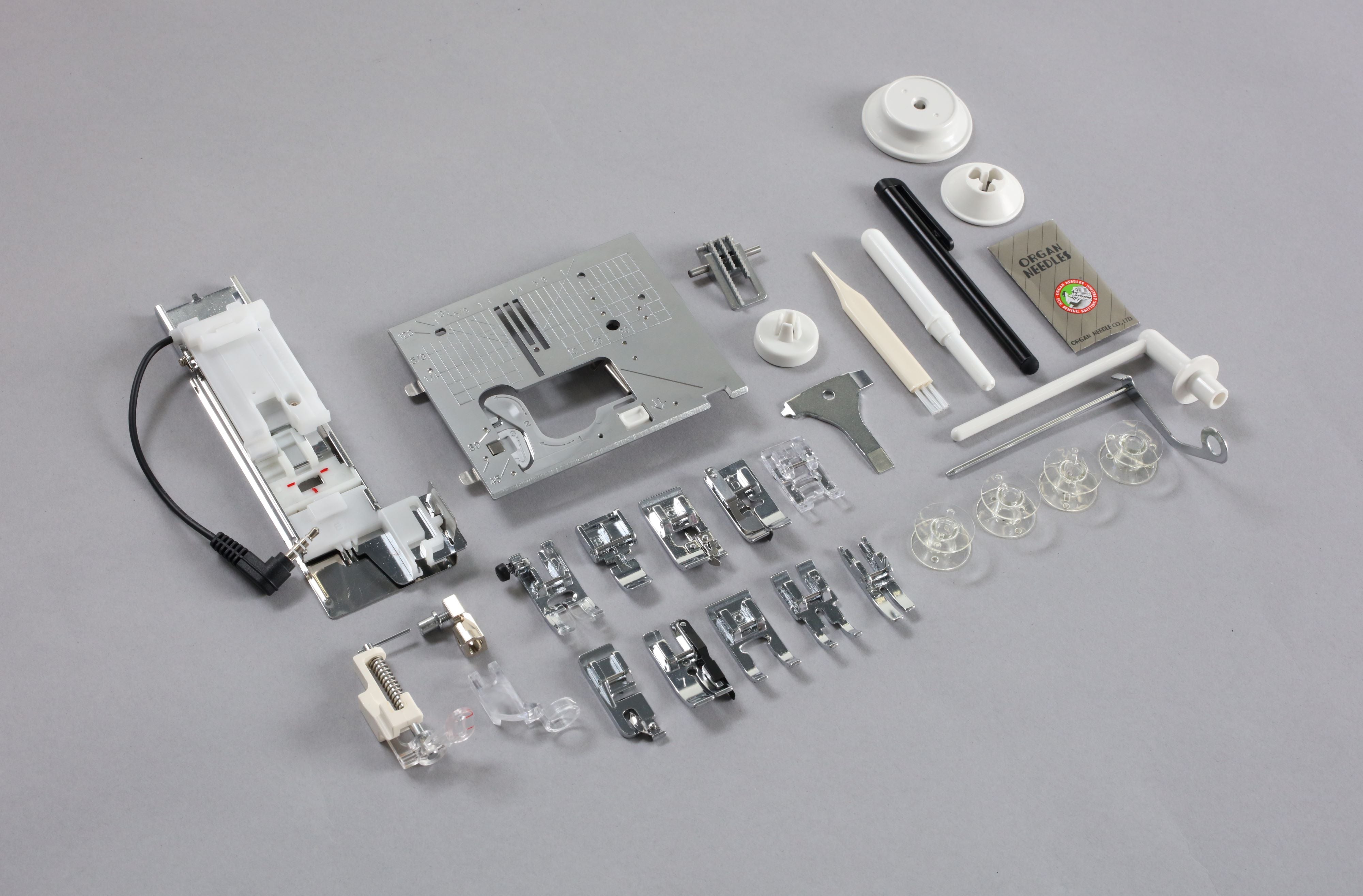 • Fácil sustitución de la placa de puntada recta y el alimentador