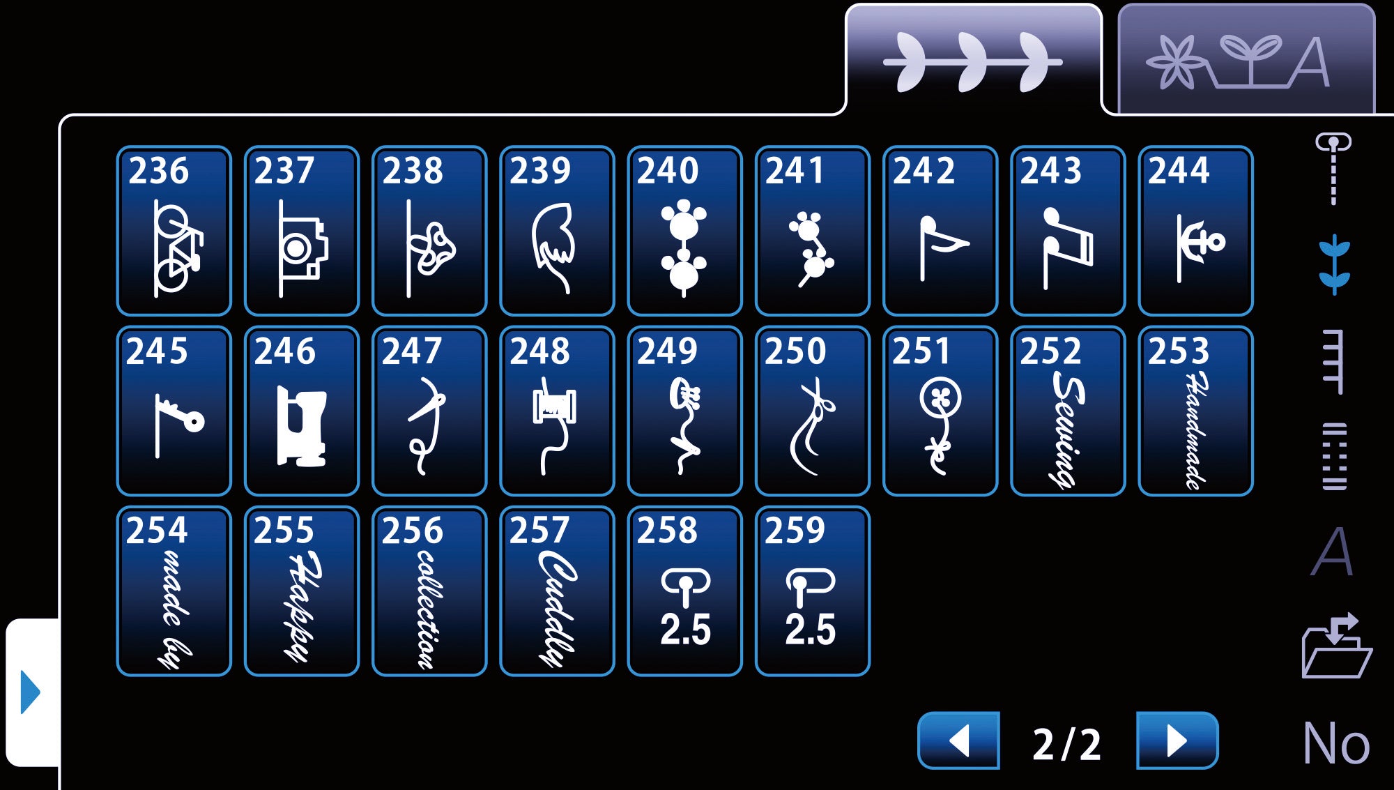 Le permite cambiar configuraciones como la tensión del hilo, la presión del prensatelas, el microlevantador, la función de pivote, el sistema de alimentación por caída y el corte automático del hilo con un solo toque. ¡Además, puede seleccionar, combinar y guardar sus puntadas favoritas en una lista de puntadas de pantalla completa fácil de usar!