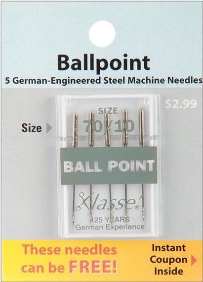 Use este tipo de aguja para tejidos de punto de algodón, interlock, tejidos acanalados, vellón, punto doble y la mayoría de los tejidos de punto. Más redondeado diseñado para separar las fibras de la tela en lugar de cortarlas.