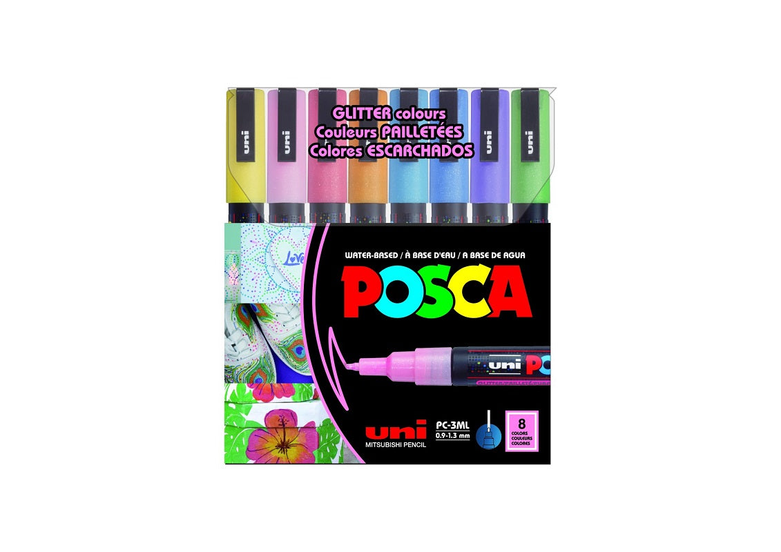 Posca Paint Marker 8 Colors PC-3M Fine Glitter Set