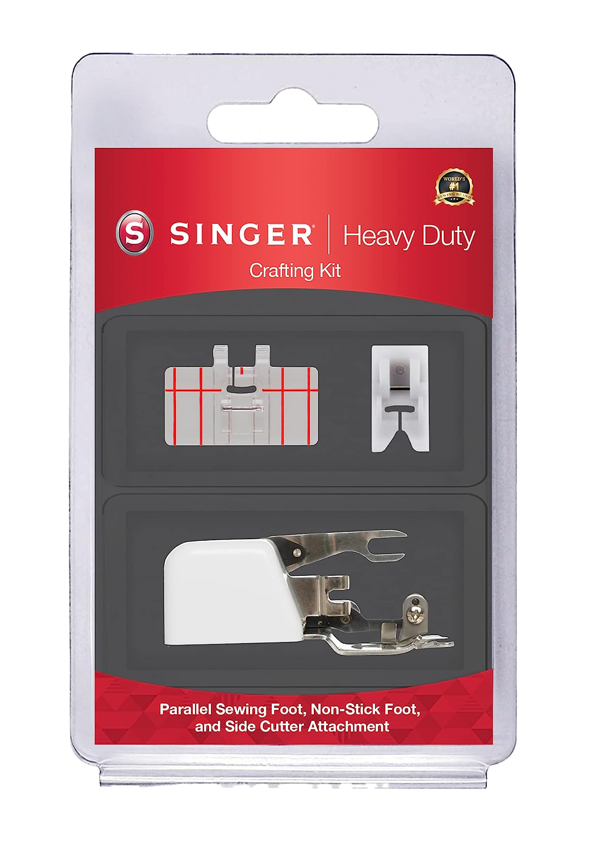 The perfect kit for heavy-duty crafters and endless creations! Side Cutter Attachment simultaneously trims and hems while you sew a seam. Parallel Sewing Foot creates evenly spaced rows of decorative stitching. Non-Stick Presser Foot effortlessly sews on tricky fabrics.