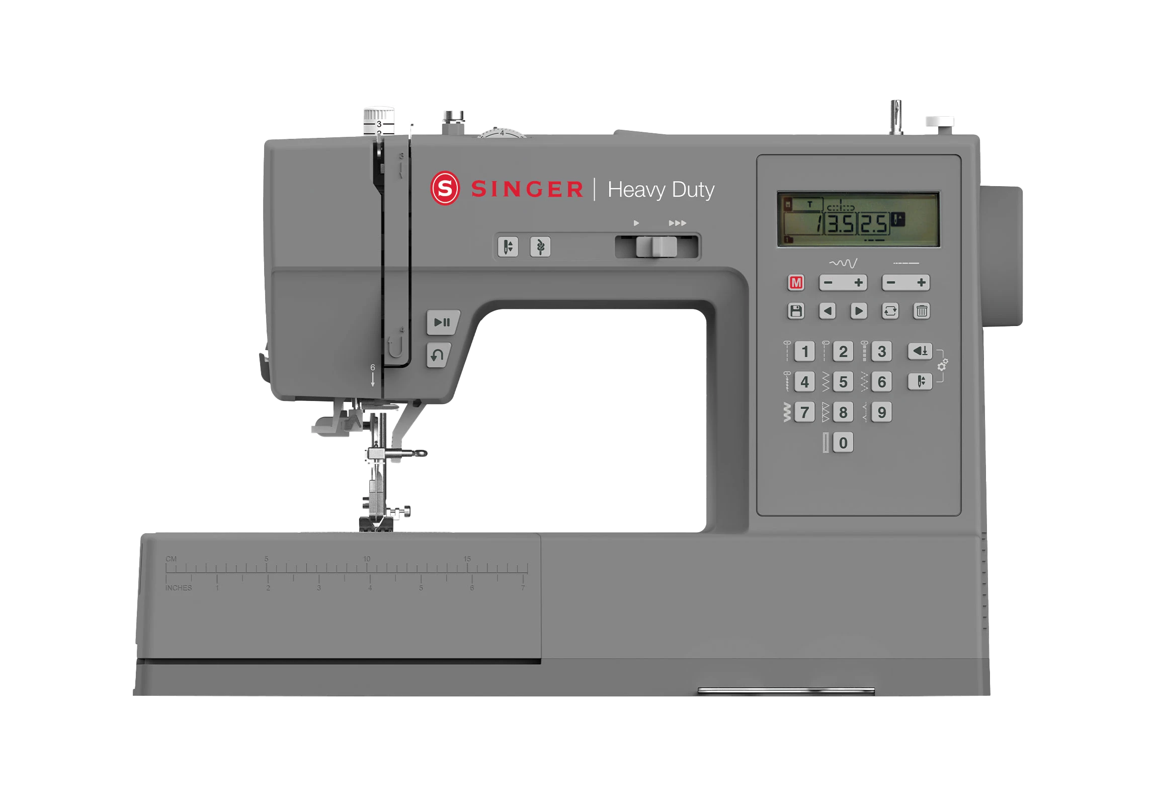 The Heavy Duty 6700C computerized sewing machine is designed with your heavy duty projects in mind, from denim to canvas. Thanks to the machine’s powerful motor, you have extra high sewing speed to save you time. The throat space (working space between the needle and tower) is 6.4" or 163 mm. With adjustable presser foot pressure, you can also sew very lightweight sheers, and the stainless steel bedplate allows fabrics to glide over the machine with ease.