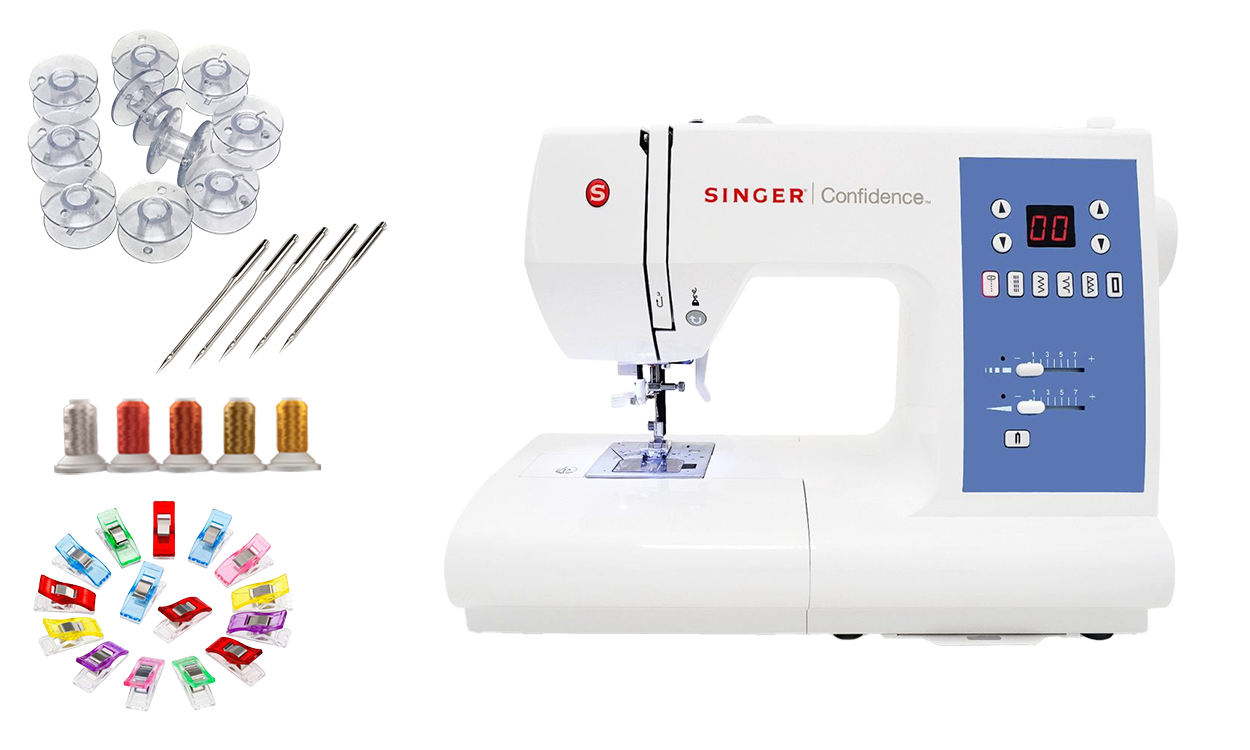 The Singer 7465 Confidence Quilter portable sewing machine is the perfect machine for new and skilled quilters alike. With many advanced features, your sewing will be relaxing and creative. The programmable needle up/down feature is vital for quilters when piecing together patchworks. The Singer 7465 Confidence Sewing Machine comes with four bonus quilting feet to expand your creative quilting and sewing possibilities. The large sewing surface of the Singer 7465 Confidence Sewing Machine lets you manage large quilts and other sewing projects with ease.