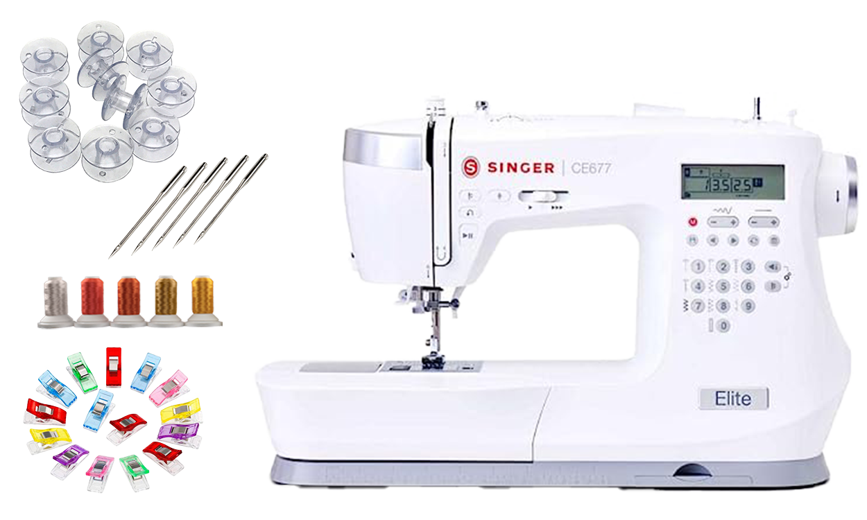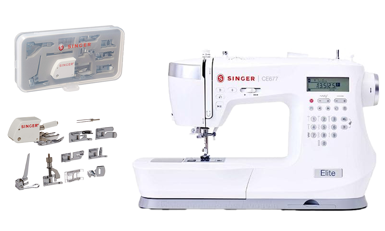 Expand your sewing possibilities with all innovative features built into the SINGER® Elite CE677 sewing machine — from the basic tools you’d expect to more intricate functions that are sure to inspire your creative side.  Work with a wide range of fabrics and easily tackle any project.  You are sure to achieve quality, consistent results thanks to a stronger motor and heavy-duty metal frame. The SINGER® Elite CE677 offers computerized, touch-button sewing that's tailored to your needs.  With an elegant and remarkably durable design, it delivers greater piercing power, enhanced speed, and versatility.