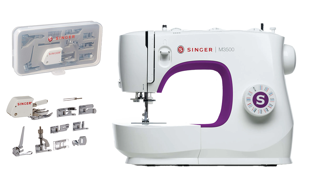The SINGER® M3500 sewing machine offers basic and decorative stitches, along with stretch stitches, so you can sew a wide range of fabrics – from sheer to stretch knit to denim and more. Stitch width and stitch length can be adjusted to further customize stitches for each and every project - a total of 110 stitch applications!