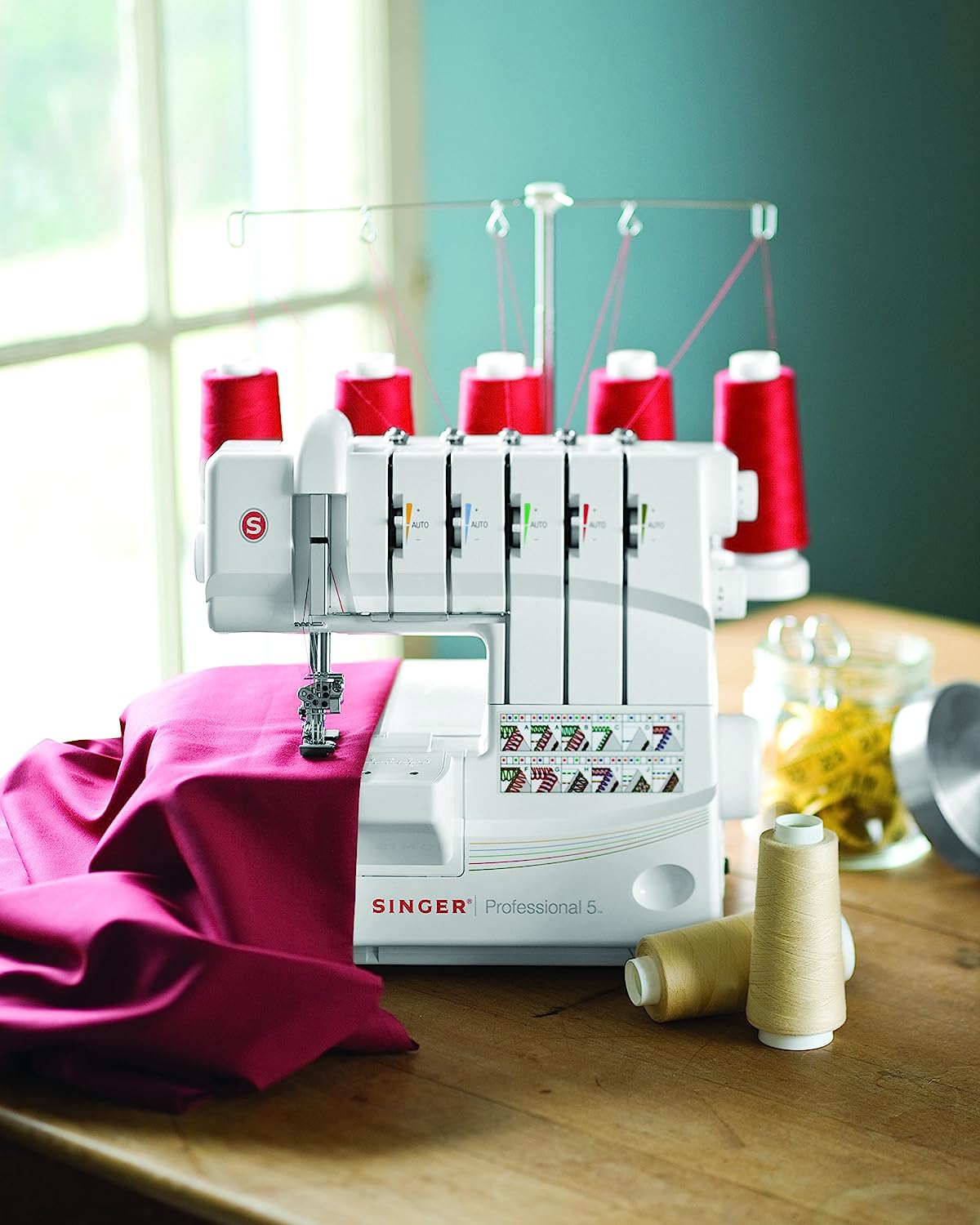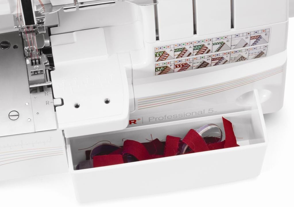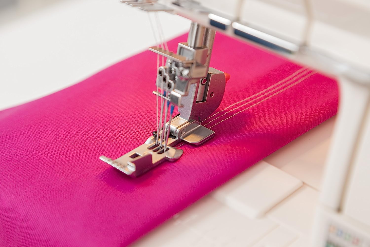 The Professional 5 serger saves you time because it sews a seam and seam finish at the same time, while trimming away the excess seam allowance. Seams and seam finishes – just like you see on store-bought garments – are possible thanks to the serger. You can use 2 threads, 3 threads, 4 threads or 5 threads for a wide variety of stitch combinations. You'll love the professional results this serger gives your projects.