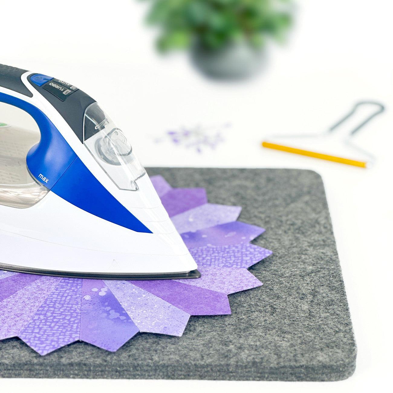 Tips and Tricks For best results, use a dry iron when pressing. When pressing an embroidered block, iron on the wrong side. The wool mat will cushion the stitches and retain the texture of the embroidery design. If the mat feels damp after use, hang to air-dry before storing. Wash the mat occasionally by rinsing it in cold water and hang the mat until dry. If you choose to use starch, wait to press the fabric until it is completely dry. Starch build-up can scorch the mat if not cleaned properly. Recommended surfaces for the wool mat include Formica, Corian, stone, and metal (an ironing board).
