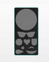 • Cut Size: One 5-1/2” circle, One 1-3/4” circle, One 3/4” circle, Sunglasses: 4-1/2” W x 1-1/2”H, Heart: 1-3/4” W x 1-1/2”H, Tongue: 1-1/2” W x 1-3/4”H, Tear: 1-1/8” W x 2-1/8”H, Eyebrow: 1-1/2” W x 1/2”H, Mouth/Smile: 2-3/4” W x 1”H