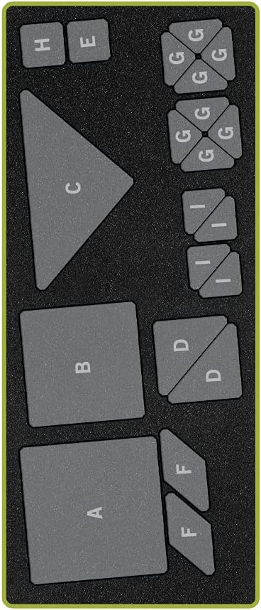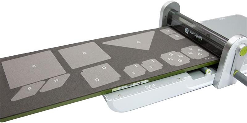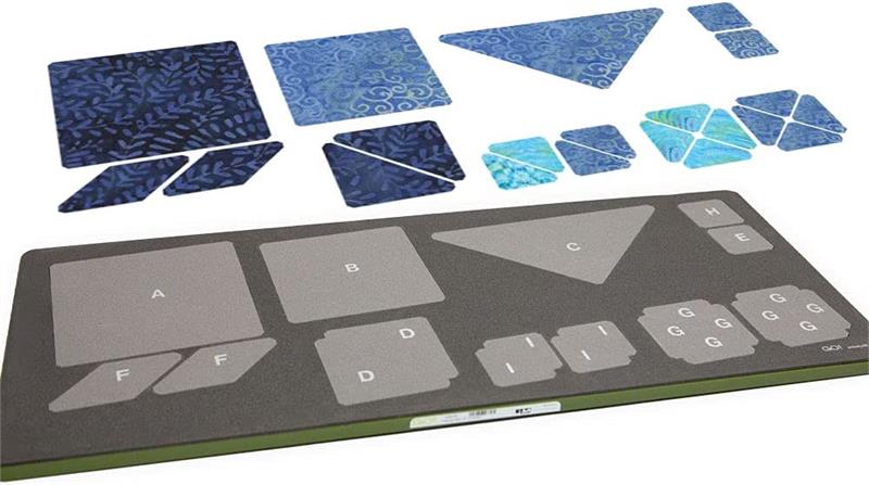• Cut Size: Square (A): 5-5/8" x 5-5/8", Square (B): 4-3/4" x 4-3/4", QST (C): 8-1/8" x 4-3/8", HST (D): 3-1/8" x 3-1/8", Square (E) 1-3/4" x 1-3/4", Diamonds (F) 3-1/2" x 1-7/8", QST (G) 2-1/4" x 1-3/8", Square (H) 1-7/8" x 1-7/8", HST (I) 1-7/8" x 1-7/8".