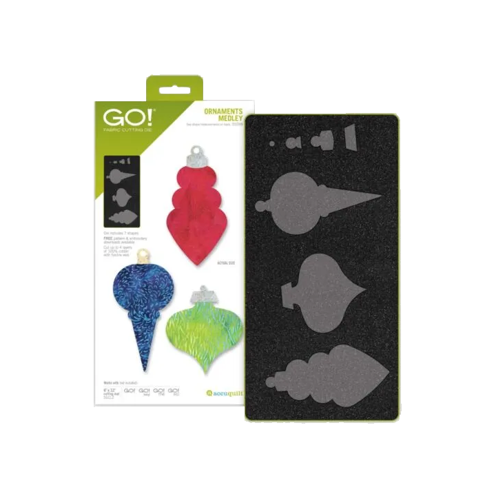 • No templates required! The GO! Ornaments Medley die includes applique shapes that are difficult to cut by hand.