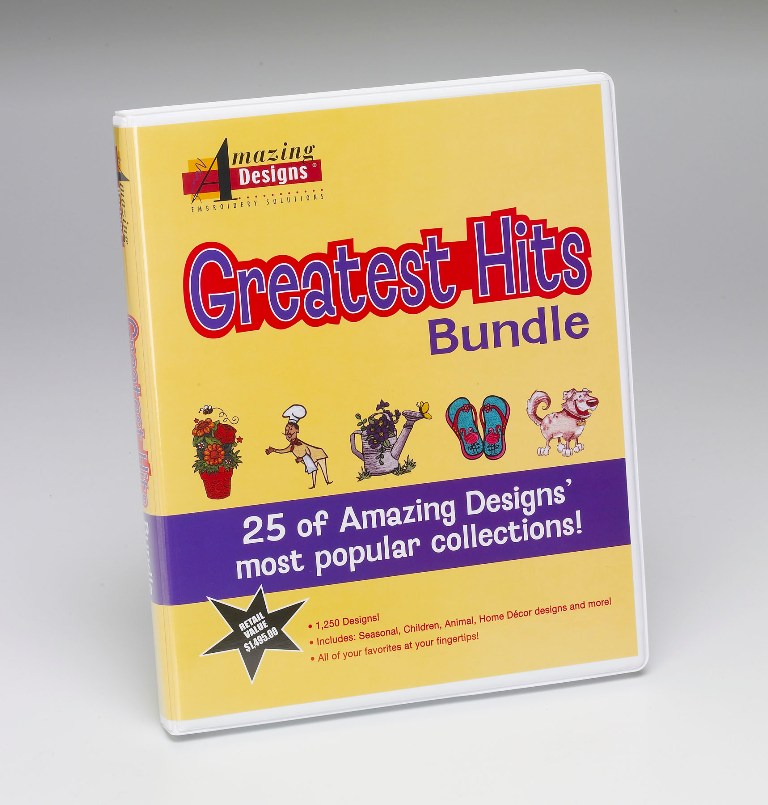 With the Greatest Hits Bundle, you can get 25 of Amazing Designs most popular embroidery design collections at one Amazing Price!