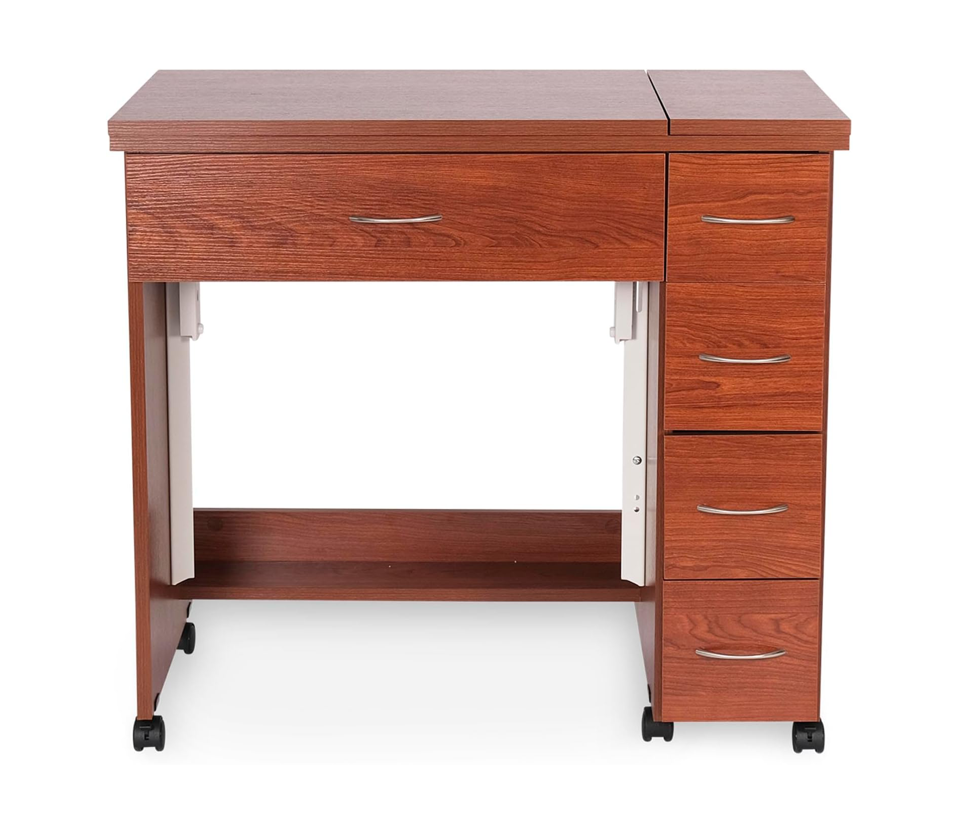 Alice Sewing Cabinet is a compact, mid-size sewing cabinet, designed with an ultra home-friendly footprint for your growing sewing studio! Alice features a convenient 3-position hydraulic sewing lift for free arm and flat bed sewing, 4 drawers to store notions and sewing accessories, 2 side leaves to expand your work surface, and sits on heavy-duty locking casters for stability and easy mobility!