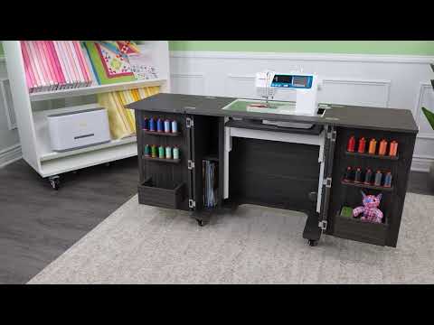 Bandicoot Sewing Cabinet is the signature mid-size sewing cabinet by Kangaroo Sewing Furniture highlighted by a 3-position hydraulic sewing lift for free arm and flat bed sewing, and its home-friendly collapsible footprint! Bandicoot features a dual shelving unit, 10 thread spool holders per door, and spacious door cubbies to store sewing notions, scissors and fabric swatches! A timeless design with signature features – let Bandicoot Sewing Cabinet recapture your sewing and crafting passion!