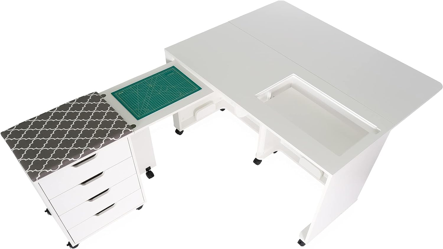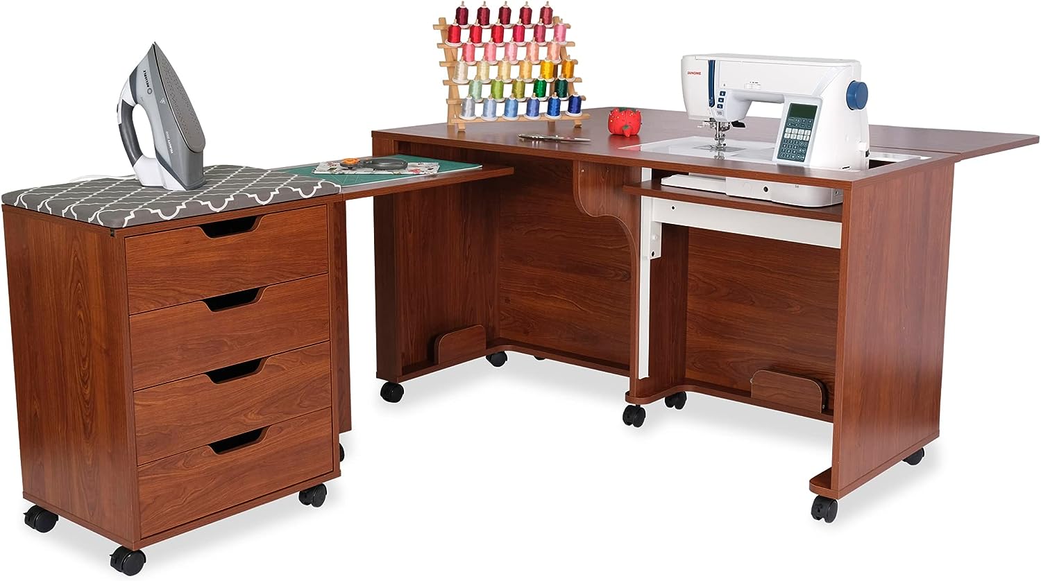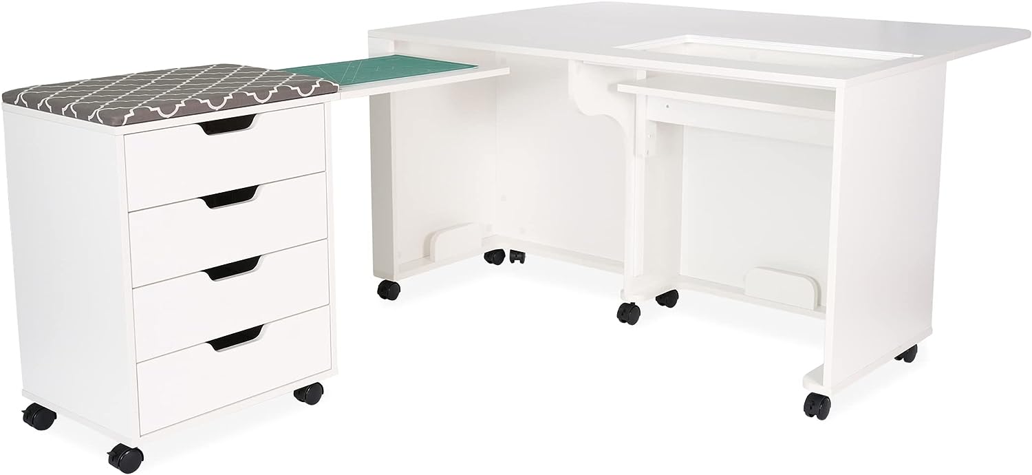 • Expandable caddy provides ironing, cutting workspace and storage for notions