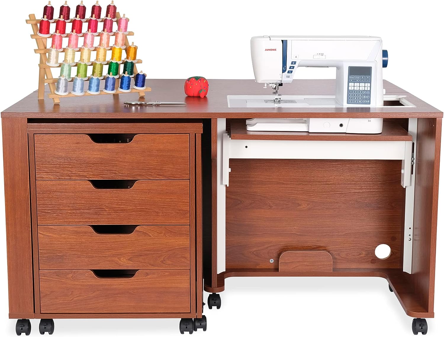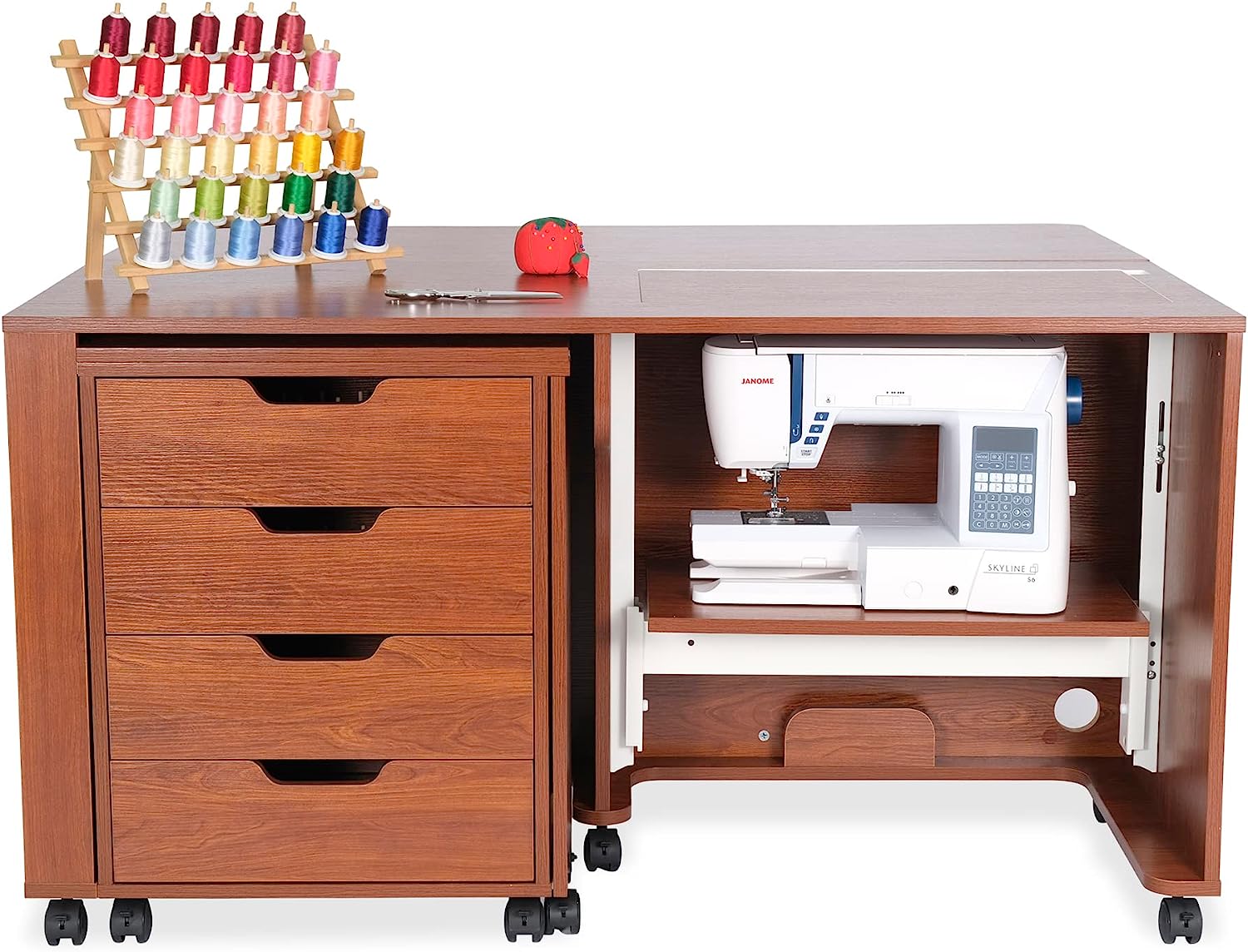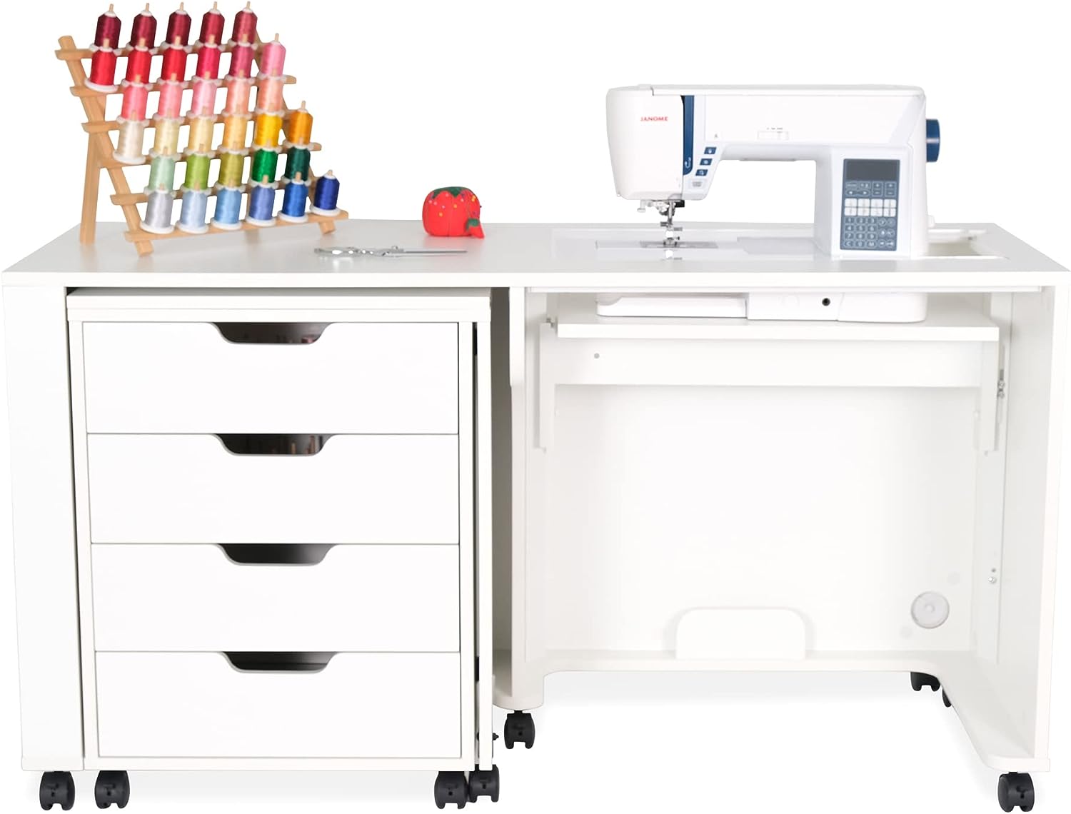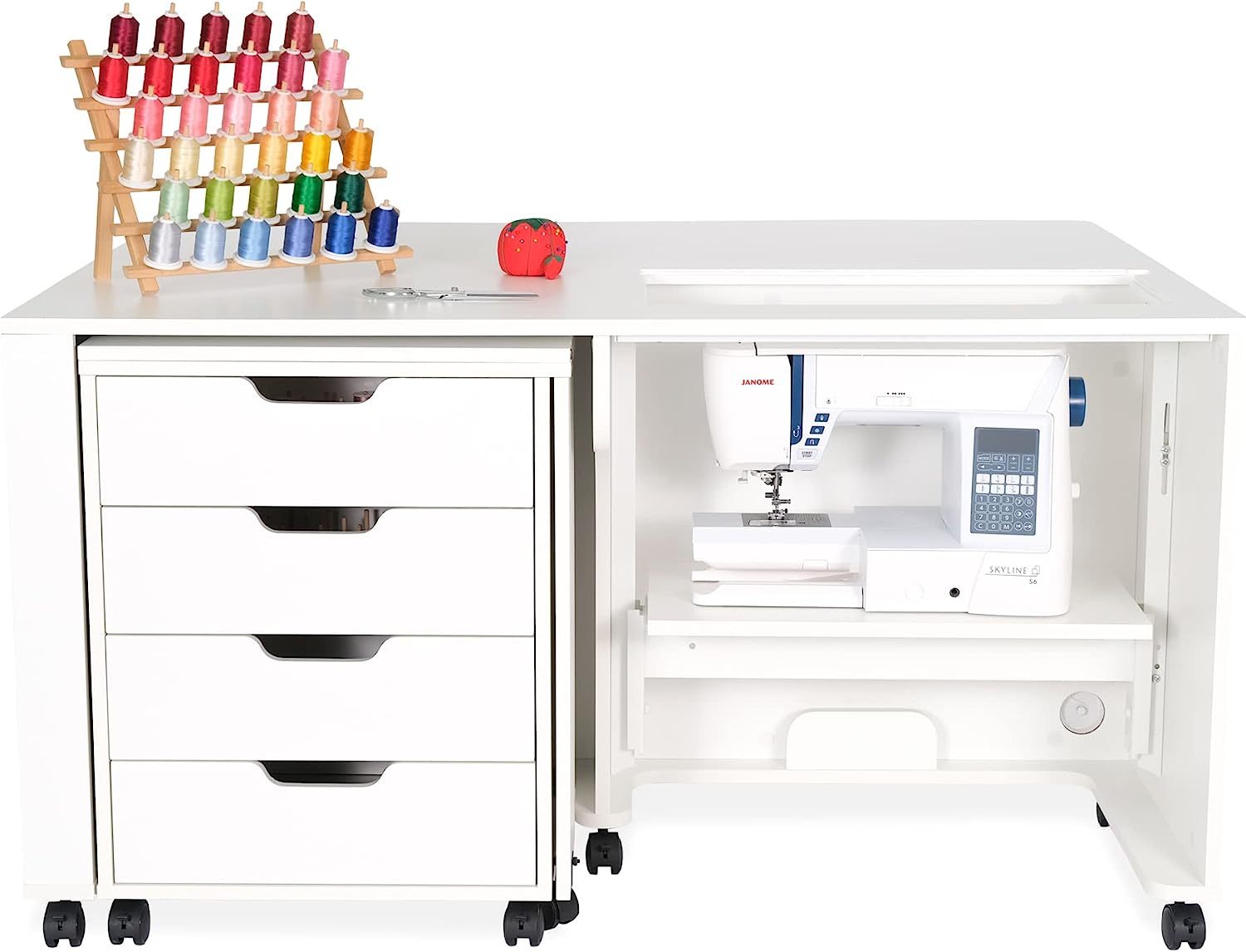 • Expandable caddy provides ironing, cutting workspace and storage for notions