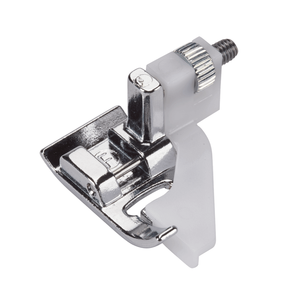 This foot is most suitable to sew blindhems or to topstitch edges. The stitches only pierce the hem so that the stitch holes are hardly visible on the right side of the fabric.