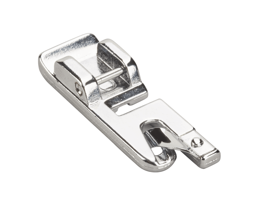 This special presser foot serves the purpose to create professional-looking seams. It folds the fabric twice which results in a nice rollhem which is then properly fixed by the needle with a straight stitch.