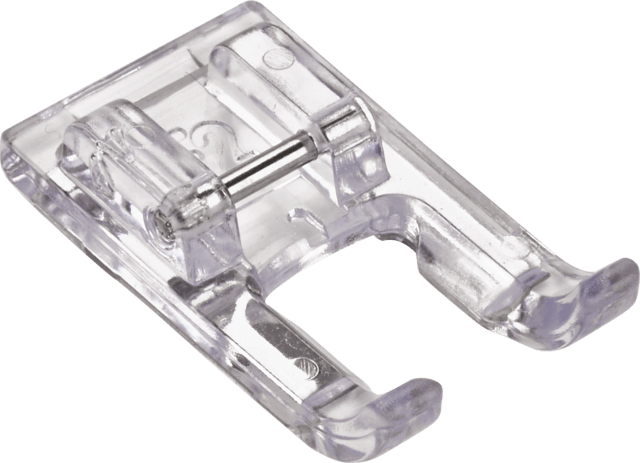 This foot makes quick work of appliqués and embroidery projects, as well as the sewing over of lines and patterns. The open shape ensures a clear view of the seam, and is therefore ideal for sewing on tapes and ribbon.