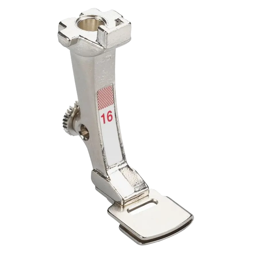 Gathering foot #16 is suitable for gathering lightweight-to-medium weight fabrics. The fabric is gathered automatically while being sewn. What’s more, the special indentation in the sole of Gathering foot #16 allows you to sew the material being gathered to a flat piece of fabric in a single operation. For this, the flat material is slipped into the indentation so that it isn’t gathered at the same time.