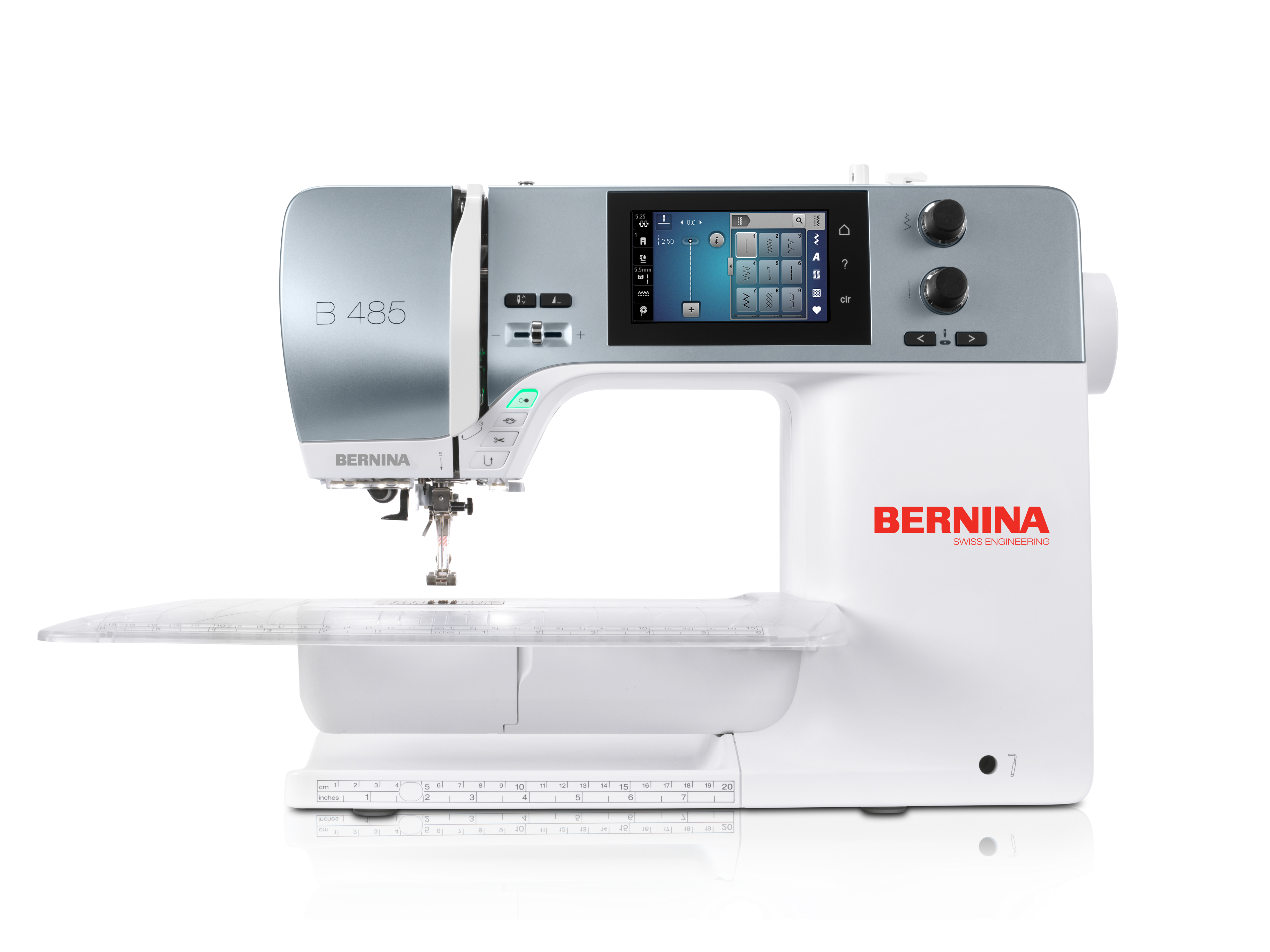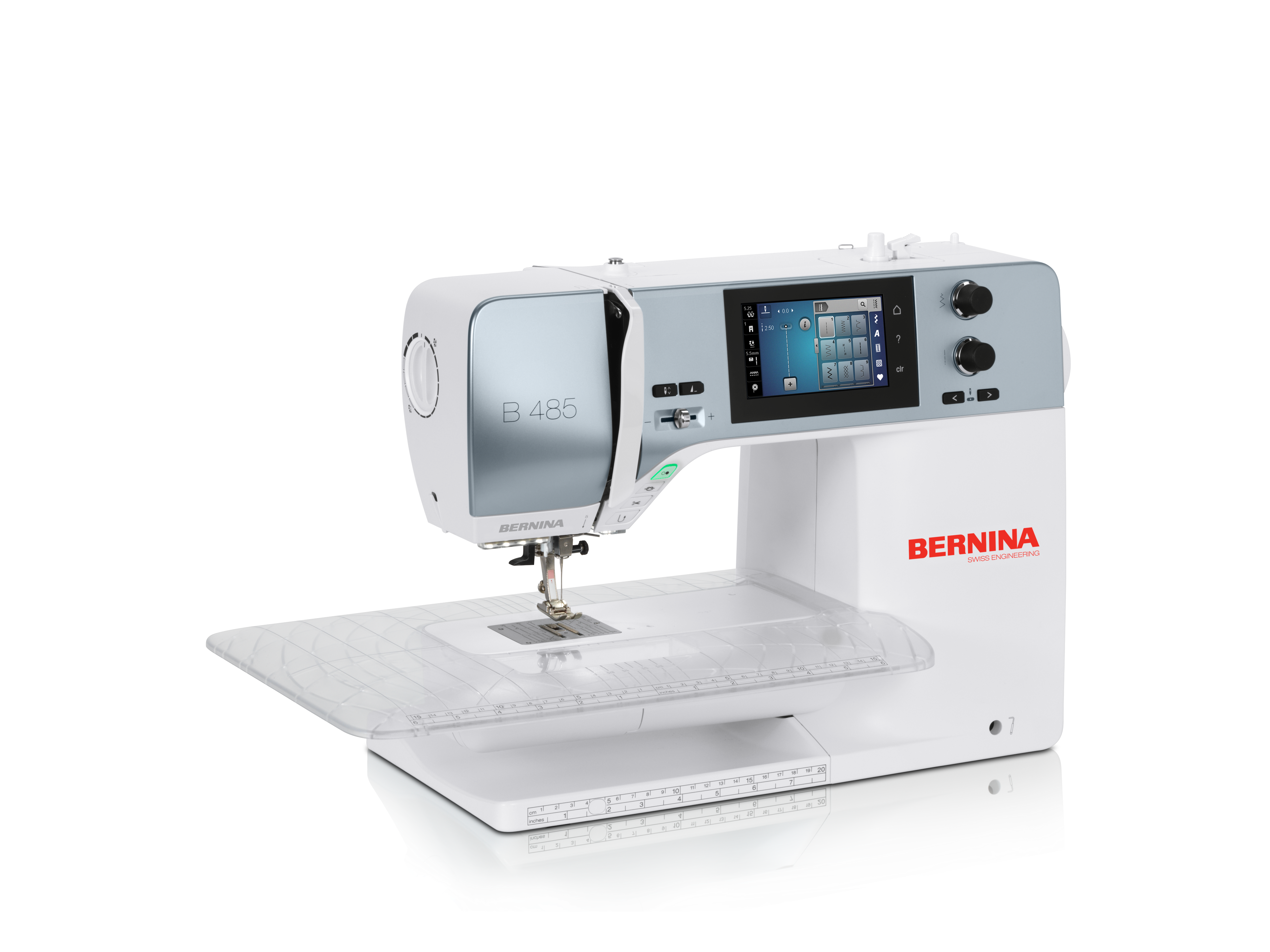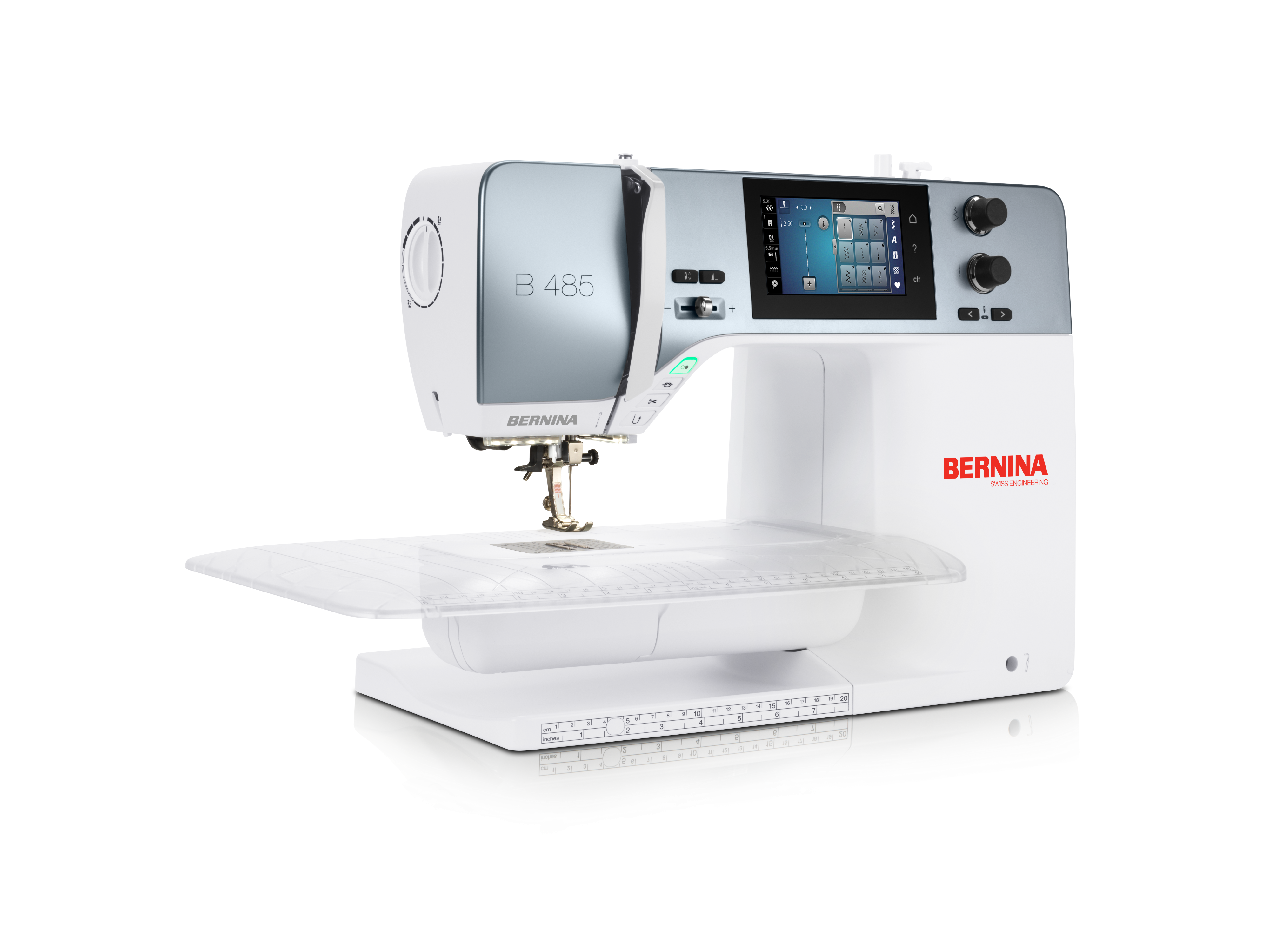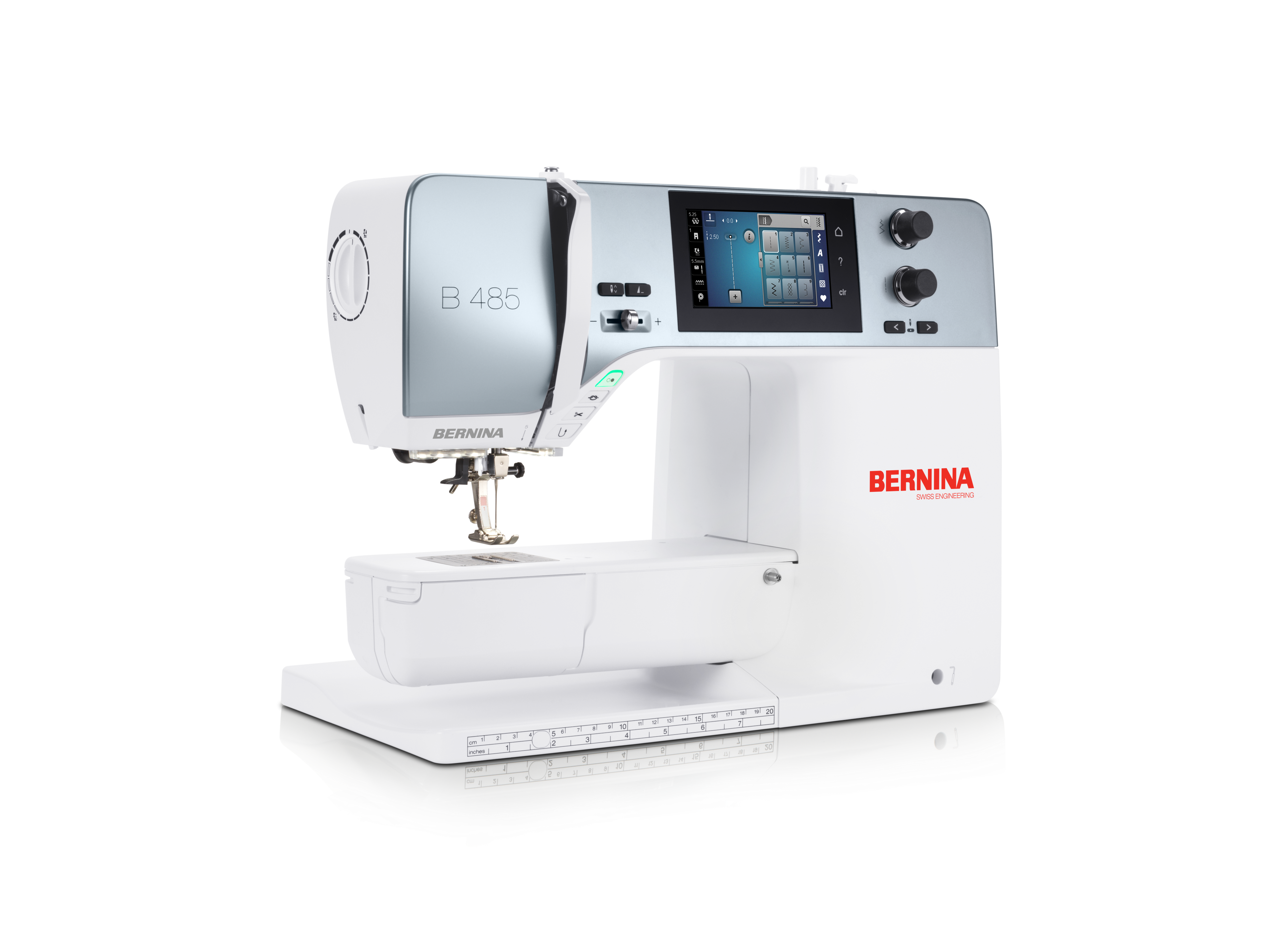 The newly developed Bernina 485 offers a clever and creative workflow with its innovative sewing functions. Thanks to the powerful DC motor and the patented BERNINA hook, you can sew effortlessly through all types of materials with the highest level of BERNINA precision - even multiple layers of leather.