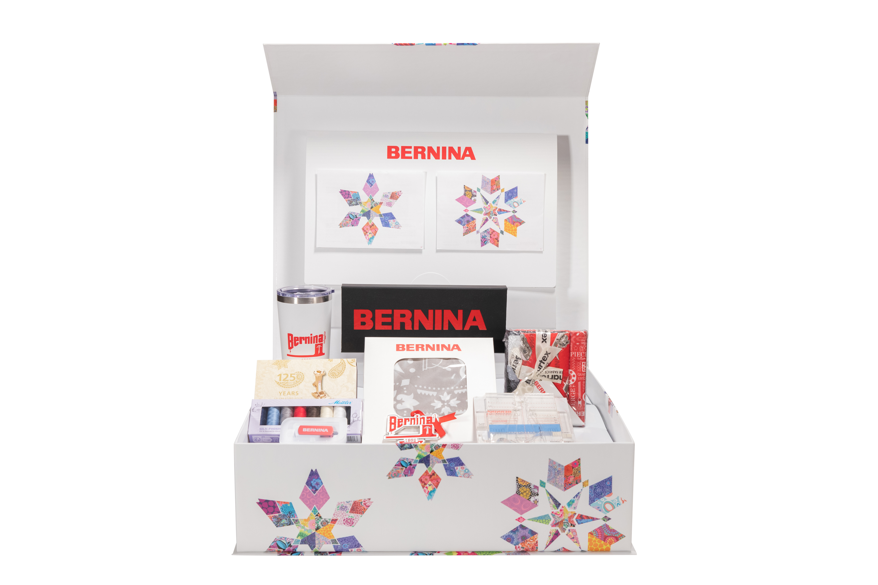 Curated exclusive BERNINA branded collection from top designers. The box contains 12 limited edition items, perfect for any BERNINA enthusiast.