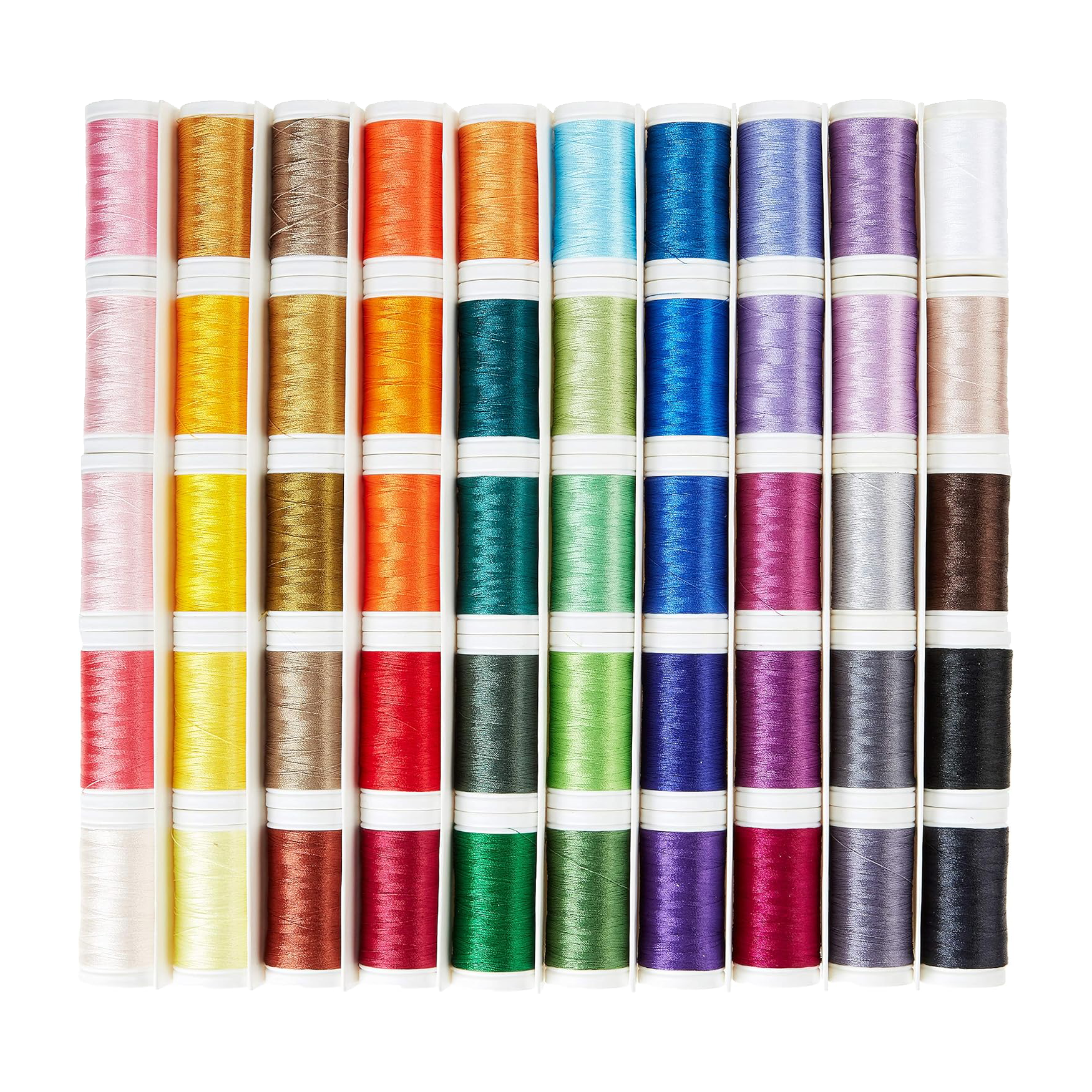Included are 50 spools of Brother's most popular embroidery thread colors, in beautiful, rich tones to enhance all of your embroidery projects. This durable, high strength, high sheen embroidery thread is made of 100 percent polyester, which retains its color, heat resistance and strength for superior results. Each spool contains 600 yards of 40-weight embroidery thread, the recommend weight for home machine embroidery. The spools feature a unique double-snap design to help keep your thread from unwinding. Specially designed and tested for optimal results with Brother embroidery and sewing machines.