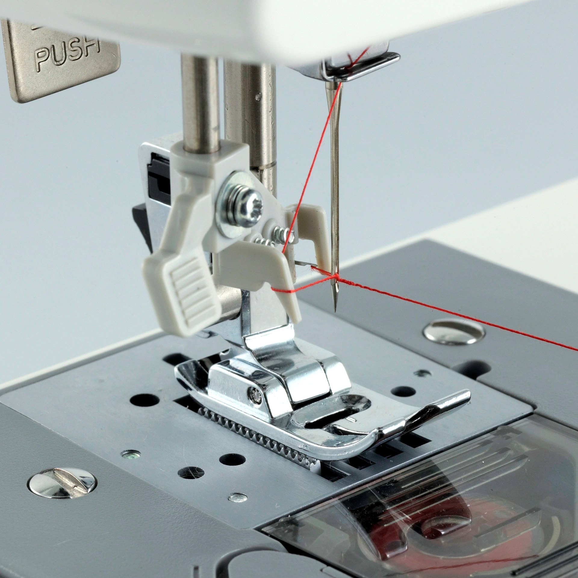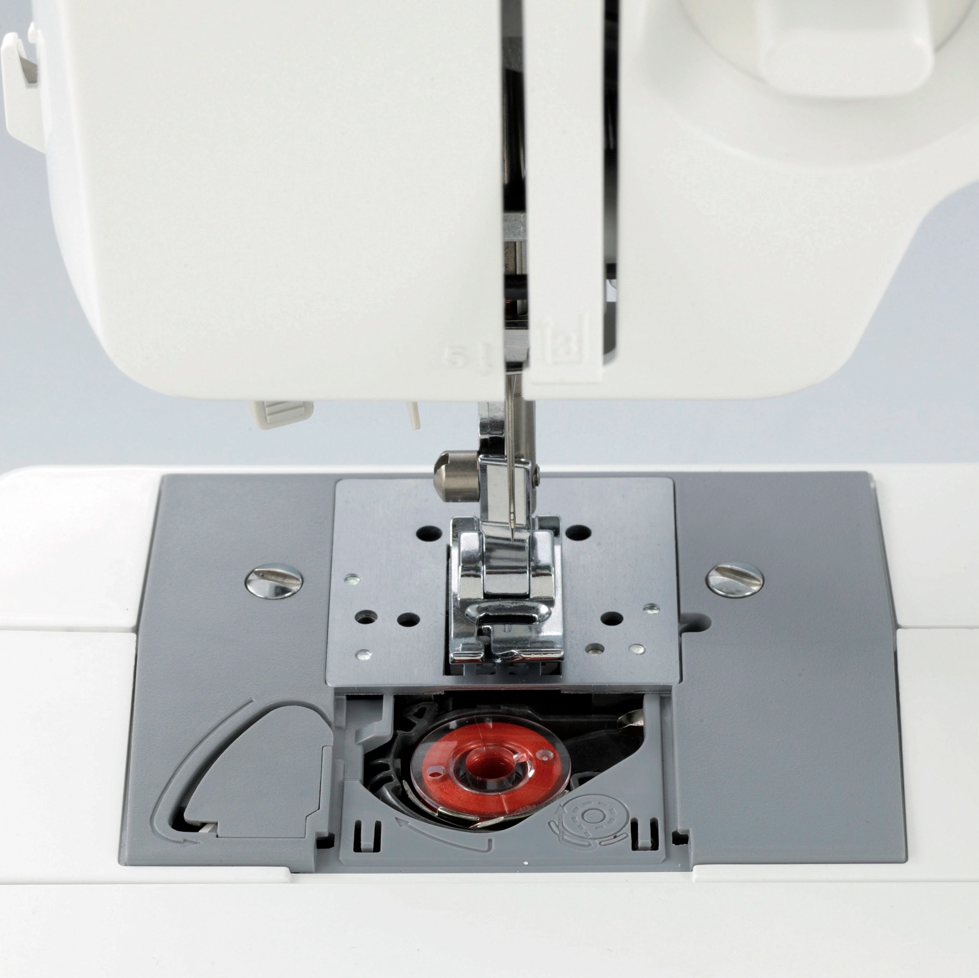 The Quick-set drop-in bobbin helps ensure your bobbin stays in place, and helps provide the level of reliable, even stitch quality you need. The clear-view bobbin cover and bobbin allow you to easily see when you're running low on thread.