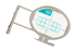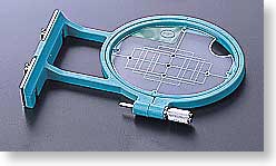 Embroidery hoop for monograms for collars and cuffs. Adjustment screw for securing a wide variety of fabric thicknesses in the hoop. Clear grid notched for accurate placement of embroidery designs. Markings on hoop for easy reference.