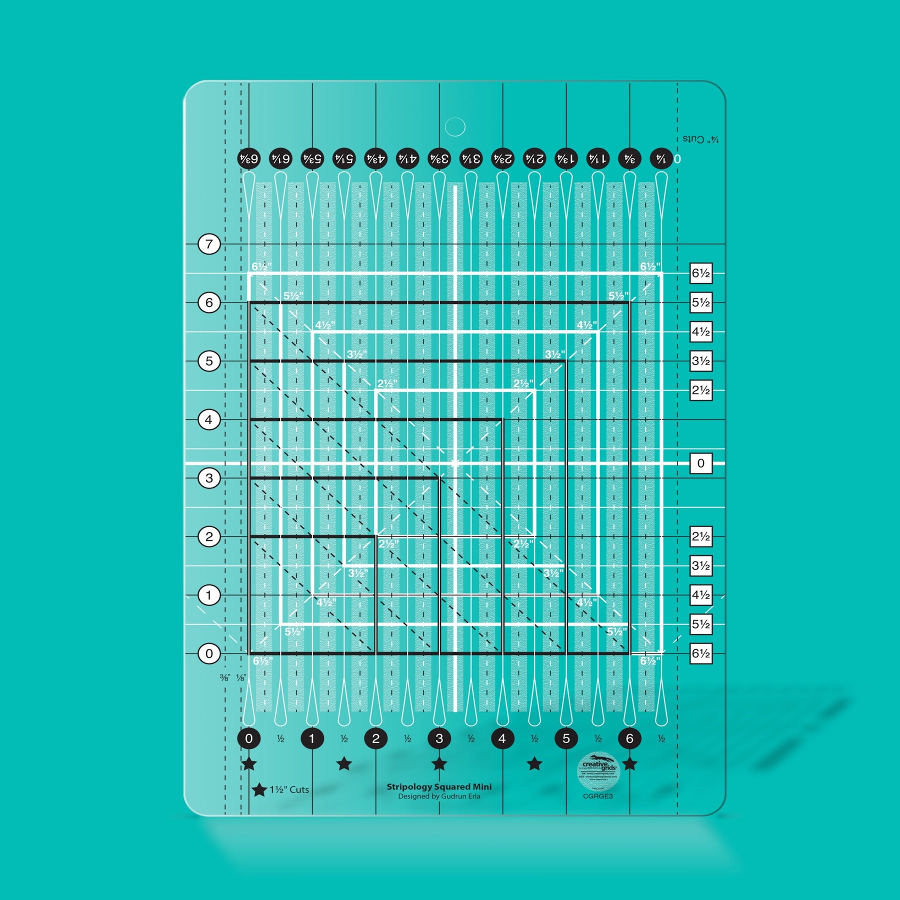 The Stripology® Squared Mini is the smallest ruler in the Stripology® series of rulers. Designed to work with units up to 6-1/2in.