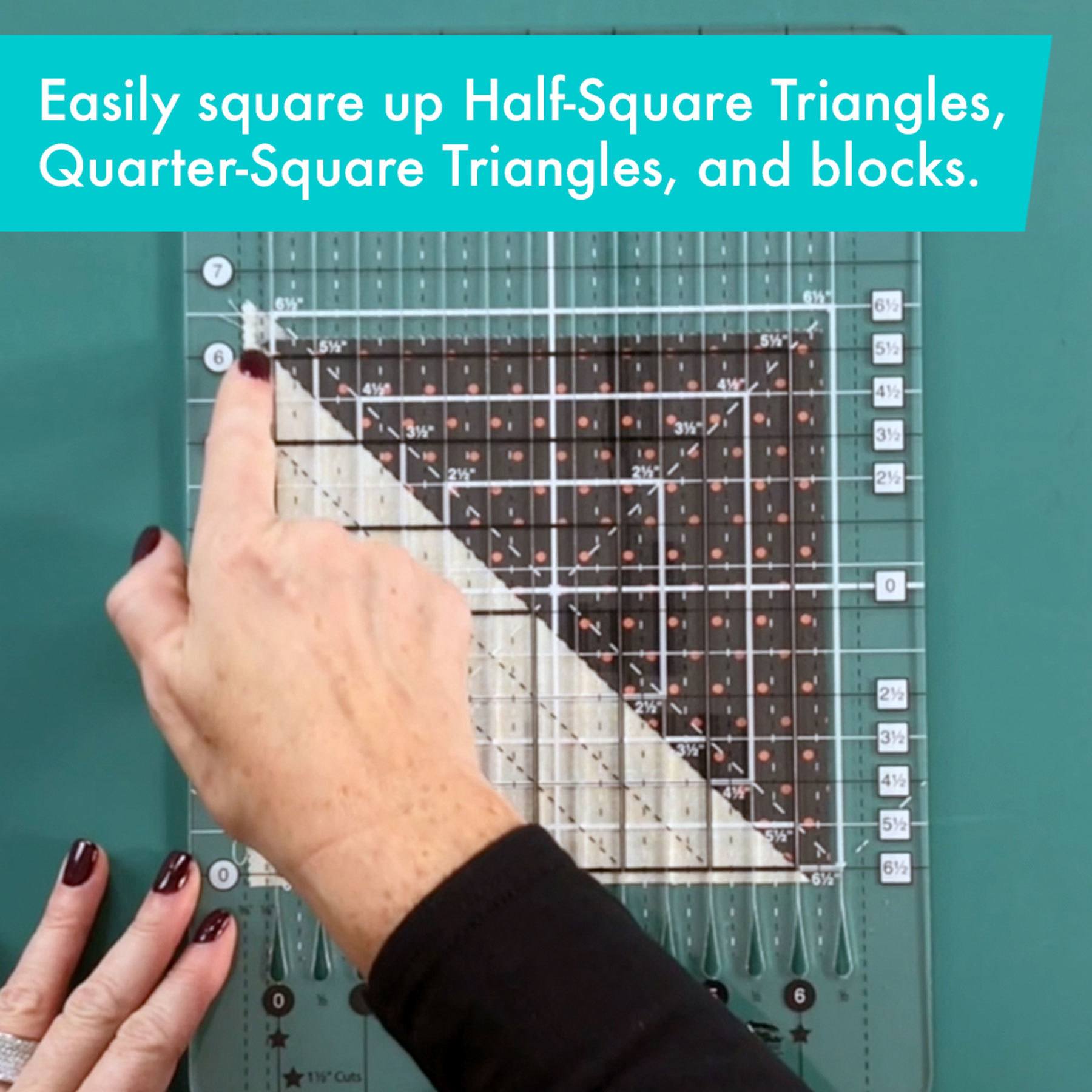 • Use the white lines to square up blocks in half inches up to 6-1/2in.