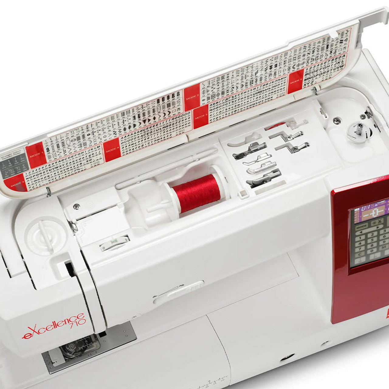 The new elna eXcellence 710 offers a very large sewing area and an array of helpful functions and impressive features. The eXcellence 710 is equipped with a Dual Feed system, that evenly moves your fabric from top and from bottom with amazing precision. It guides multiple layers in perfect synchronization and enables precise matching of stripes and patterns like checks. The removable Dual Feed foot wide comes as a standard accessory. Additional Dual Feed feet are available as optional accessories. These include Dual Feed Plus feet that are very useful for narrow work. This model comes with an extensive package of standard accessories and includes the right tool for a broad range of sewing tasks and quilting techniques.