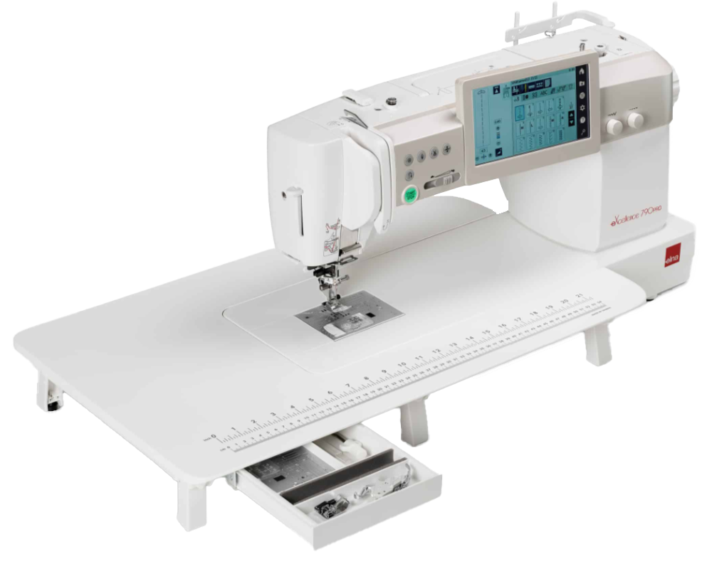 The 792PRO allows you to sew larger projects with ease. This machine features a 13.5" by 5.5" sewing area. It also includes an extra wide table, expanding your workspace with a built-in storage compartment for accessories.