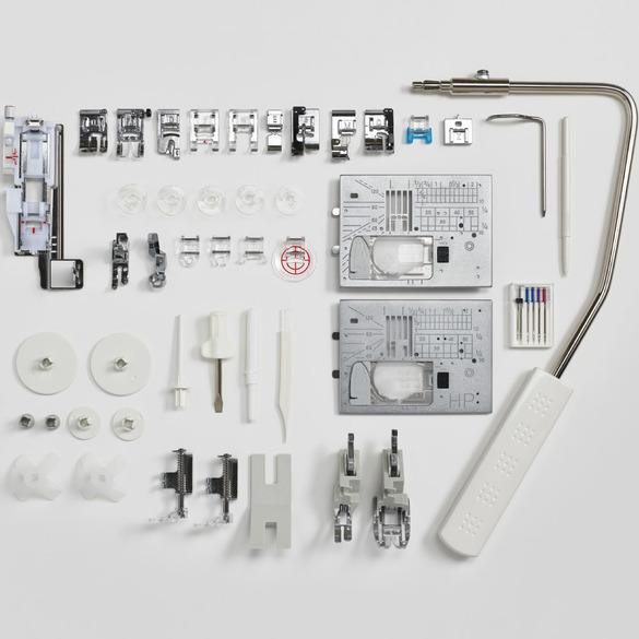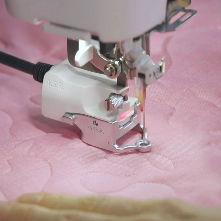 The Accurate Stitch Regulator comes as a standard accessory with the 792PRO, including four presser feet encompassing an array of free-motion techniques and ruler work. This ingenious system adjusts to the speed of the fabric's movement, making free-motion stitching and quilting effortless.