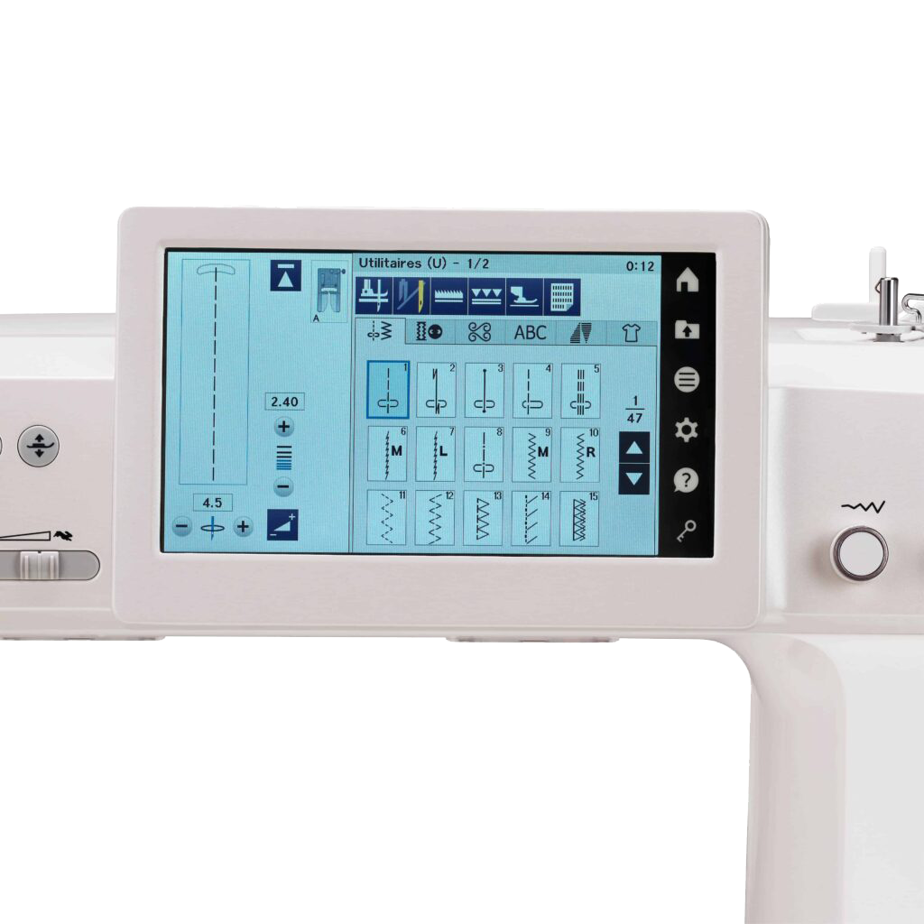 Uncover all the features of the eXcellence 792PRO with the 7" full-color HD LCD touch screen. Select stitches, designs, stitch width/length, get on-screen presser foot recommendations, and more from this user-friendly, multi-language display. It features "On Screen Help" where you can view instructions on six topics of essential operations of the machine.