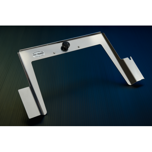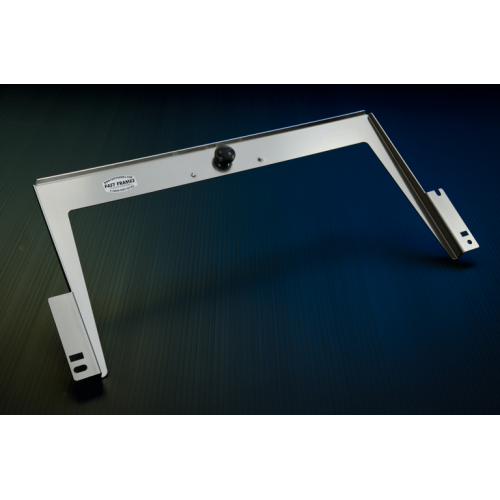 Fast Frames are a hoop less embroidery frame. Stick on backing is placed on the frame. The adhesive backing is exposed in the open embroidery area of the frame. Press the area to be sewn firmly down on the backing. Use the notches as line up points for alignment. Any area that will lay down flat in the sew field you can sew. Rotation of the design may be needed, for example the back arch of a cap. Use it for sweat band area of caps, backs, sides, bills, bucket caps, collar tips, cuffs of sleeves, dog collars, gym bag center flaps, etc. Sport knits do not get stretched out of shape. The stick on backing holds it in place. This is a much faster cost effective way of sewing hard to sew items. Don't worry - you won't waste a lot of backing. When you tear the item away you just place a patch on the hole from the underside and press the next item in place to sew.