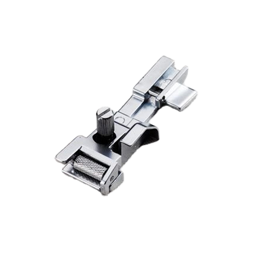 This foot is used for attaching elastic tape to the garment and the amount of contraction of the elastic tape can be adjusted as required. This foot can also be used for attaching tape to prevent stretching.