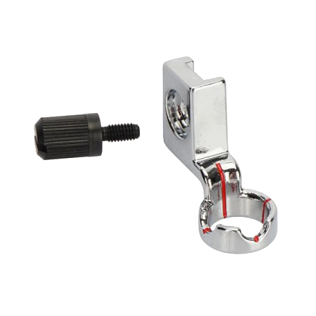 The Free Motion Ruler Foot allows you to create a beautiful style of free motion quilting in conjunction with your ruler templates. The perfectly circular shape allows you to sew a constant ¼” away from the edges of your ruler template. Red markings on the foot indicate the center of the foot, making it easy to line the foot and the ruler up when sewing. Cutouts in the front and side of the foot make it easier to see right up to the needle.
