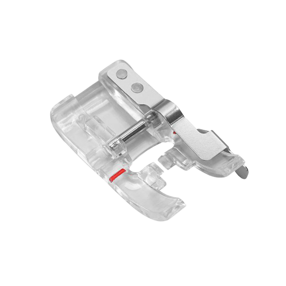 The Clear B Edge Stitching Foot guides decorative stitching along an edge perfectly. The tunnel on the bottom of the foot allows stitches to form perfectly and feed flawlessly. The flange along the edge of the foot keeps the distance between the edge of the fabric and the stitching consistent. Anytime your SEWING ADVISOR™ feature or GraphicDisplay recommends the “B” foot, use the Clear B Edge Stitching Foot when sewing along an edge.