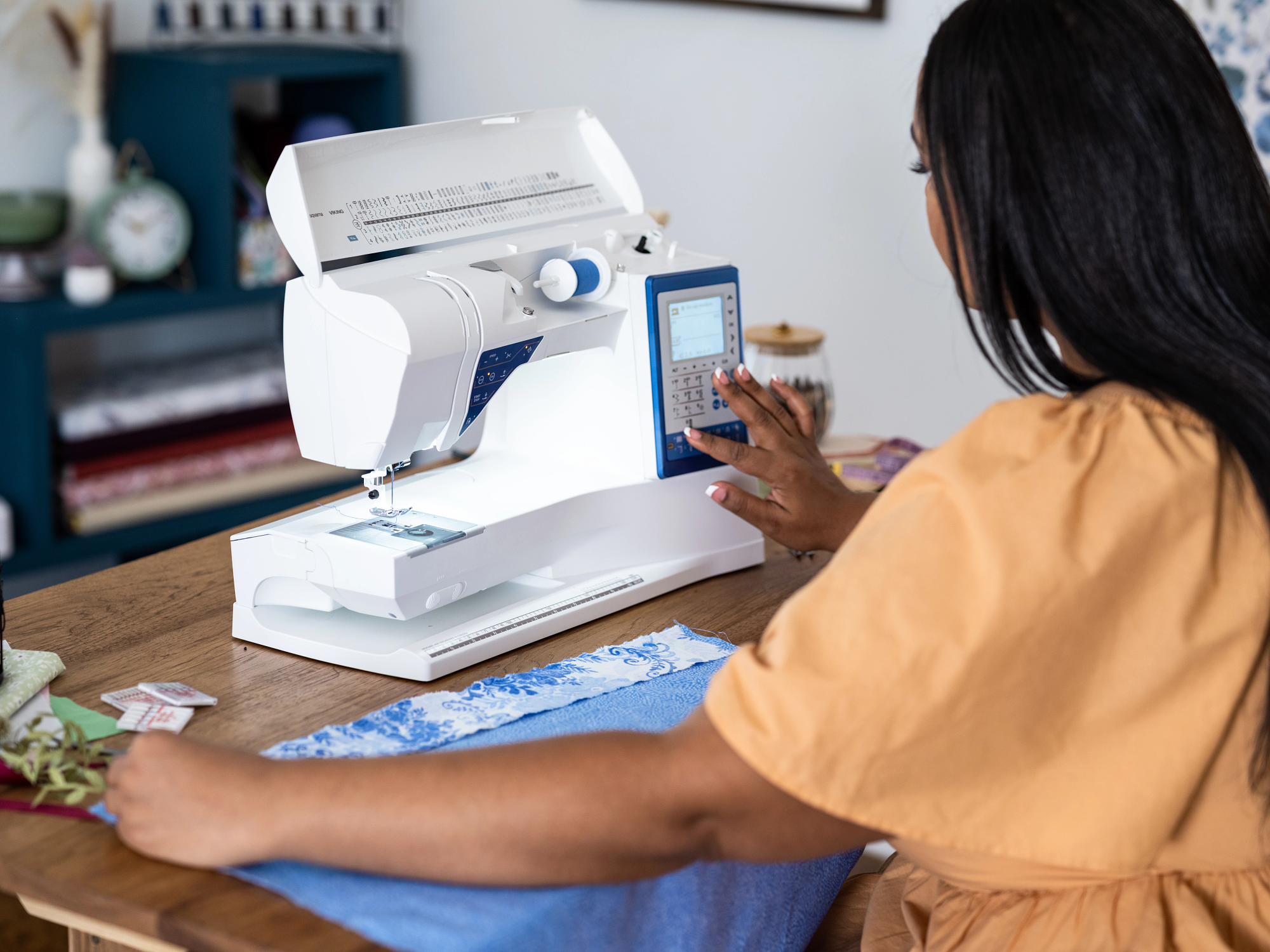 Select your type of fabric and sewing technique and the Exclusive SEWING ADVISOR® feature instantly sets the best stitch, stitch width, stitch length, thread tension, pressure, and sewing speed for you. The stitch is displayed with the recommended presser foot, needle size and type on the screen.