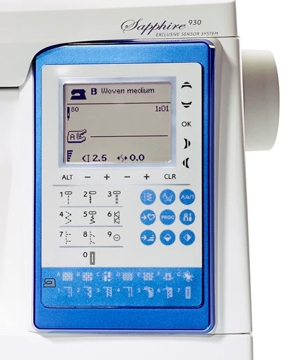 The Sapphire 930's exclusive sensor system technology automatically and continuously senses and adjusts as you sew any thickness of fabric for perfect even feeding.