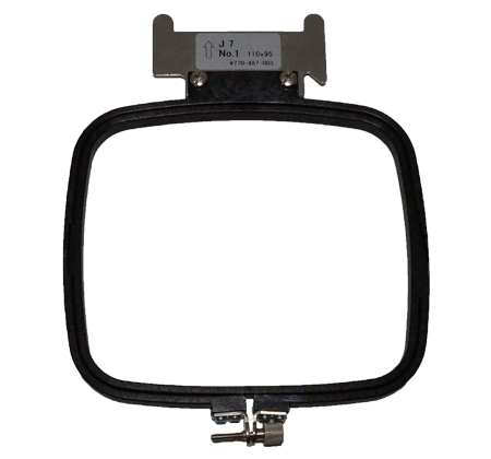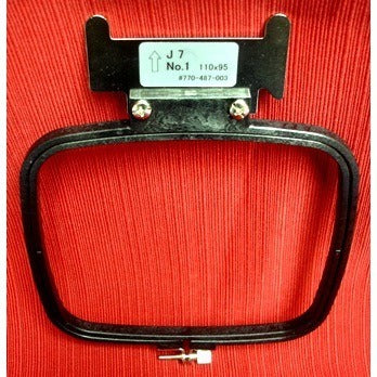 The Janome Lettering Hoop J7 NO.1 770487003 is a 110 x 95mm rectangular shaped lettering loop.