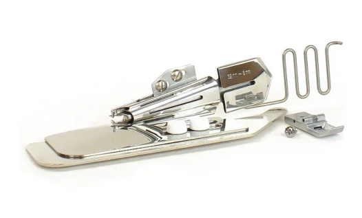 The tape binder is used for finished and covering the raw edges of stretch fabrics. The binder folds the fabric you wish to use as tape around the raw edges as you sew, allowing you to make beautifully finished necks and arm holes and bind any raw edge with ease.