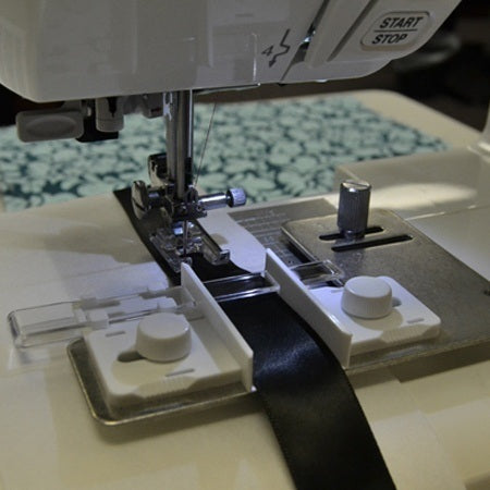 Create original ribbons by adding decorative stitching or lettering. The guide's design ensures easy attachment and automatic entering, while the transparent stabilizer bar provides perfect control. Add originality to projects and make the most of your machine's decorative stitches.