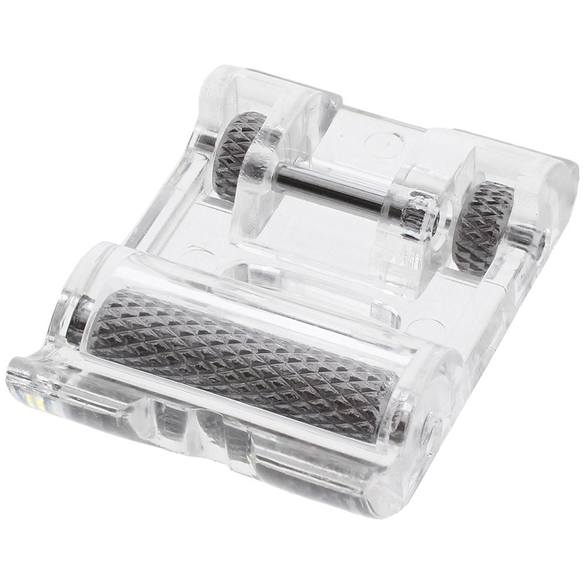 As its name suggests this foot has rollers that roll against the fabric and act very much like the track on a bulldozer for sewing up and over heavy seams and uneven surfaces. Ideal for sewing heavy fabrics the rollers move freely between the foot and the feed dogs so that the foot rides easily over varying thicknesses.